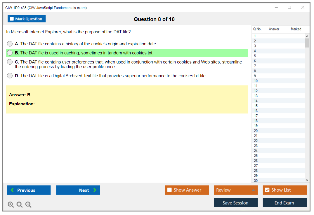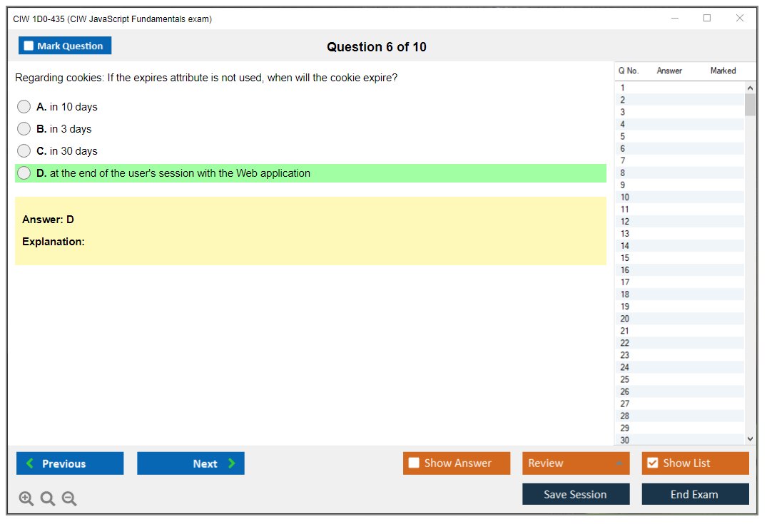 The CIW 1D0-435 exam is part of the CIW Web Development series and focuses on JavaScript, a key scripting language used for creating dynamic and interactive web pages. The exam assesses the candidate's ability to write and troubleshoot JavaScript code effectively.