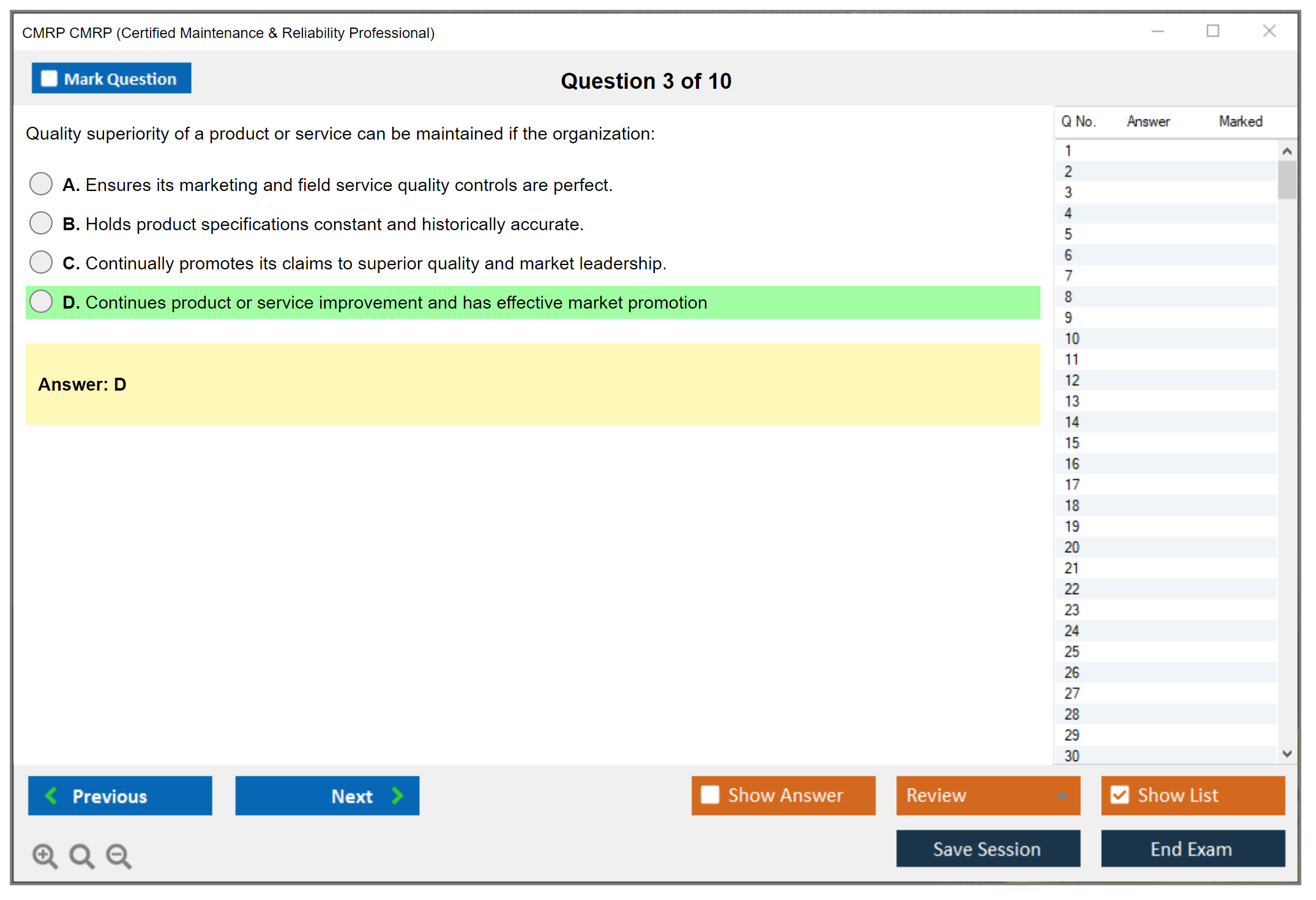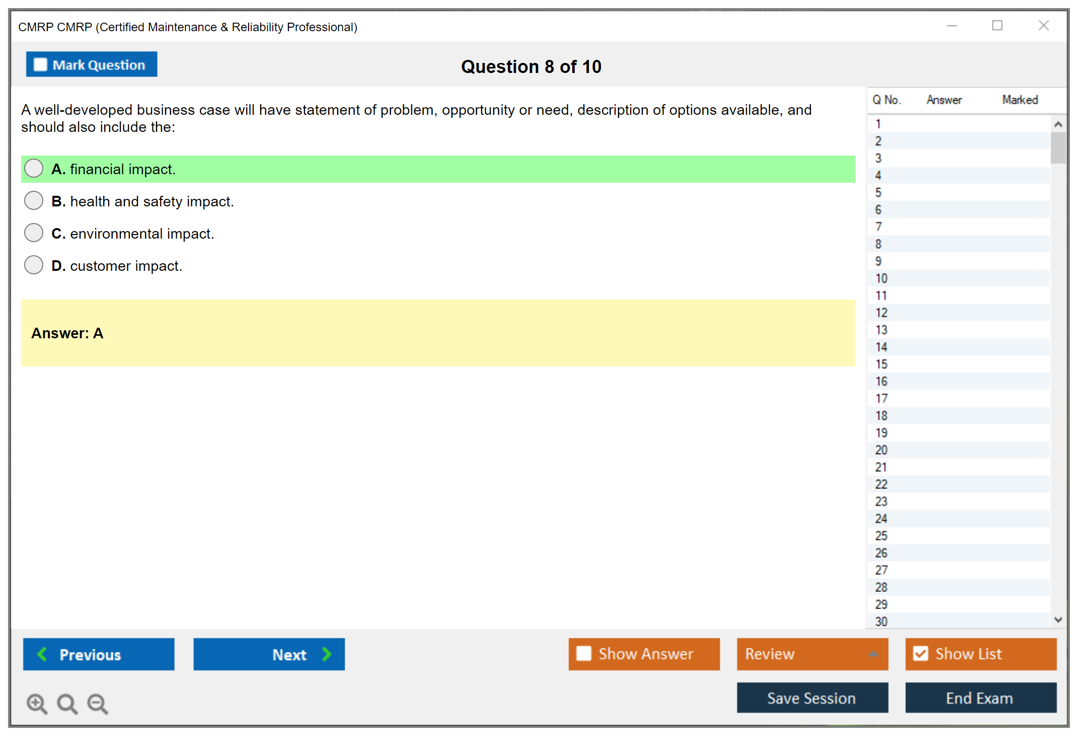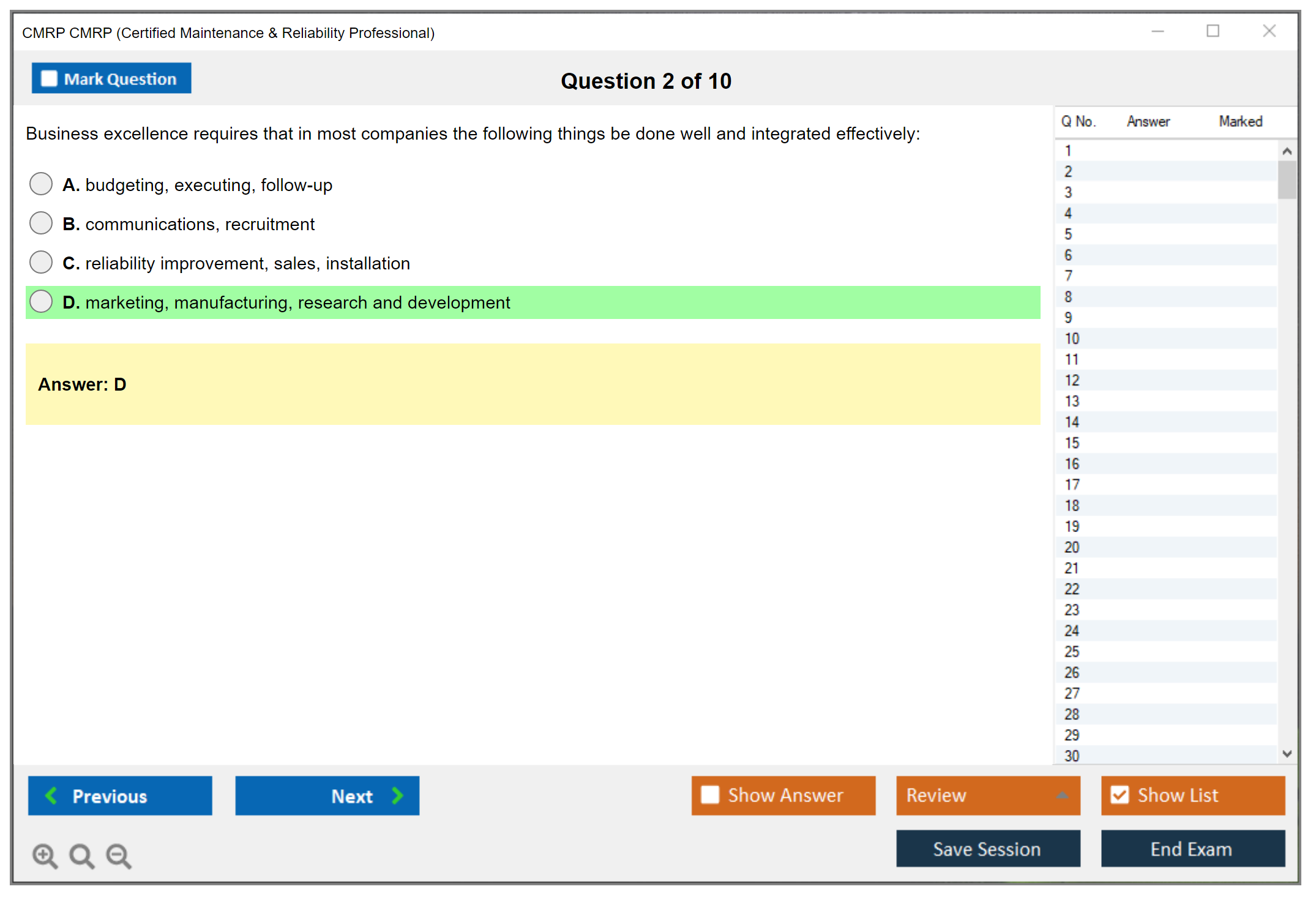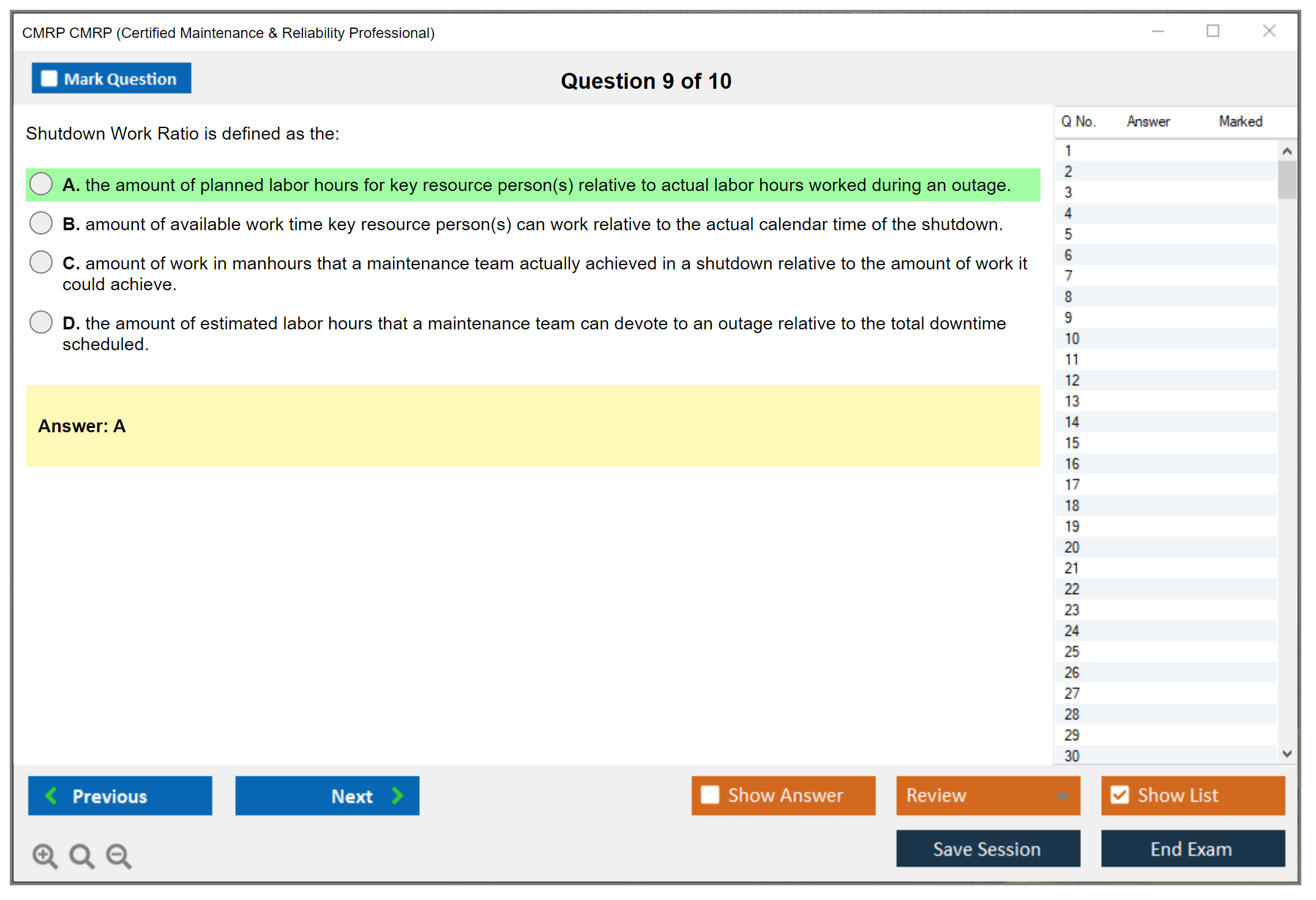 The Certified Maintenance & Reliability Professional (CMRP) Exam is a globally recognized certification designed for professionals in the maintenance and reliability industry. It validates the knowledge, skills, and abilities required to excel in the field of maintenance and reliability.
