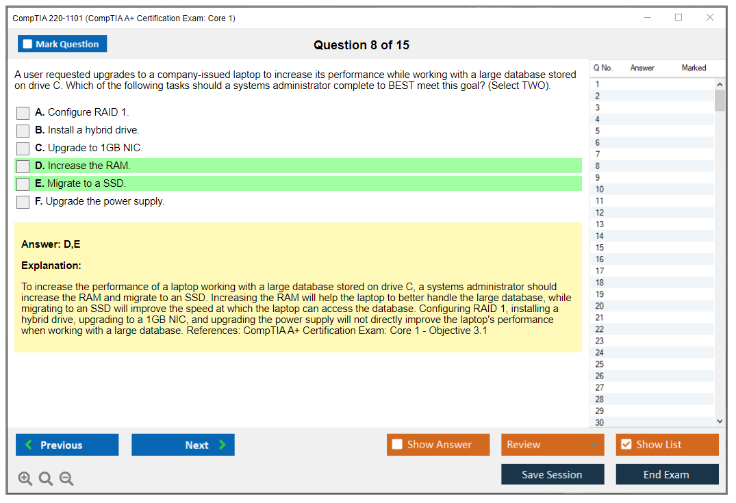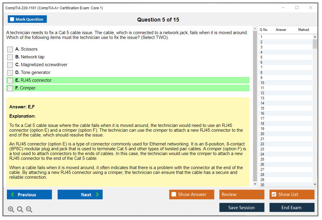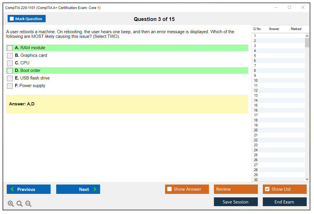 The question format of the CompTIA 220-1101 Exam includes multiple-choice questions (single and multiple response), drag-and-drop questions, and performance-based questions.