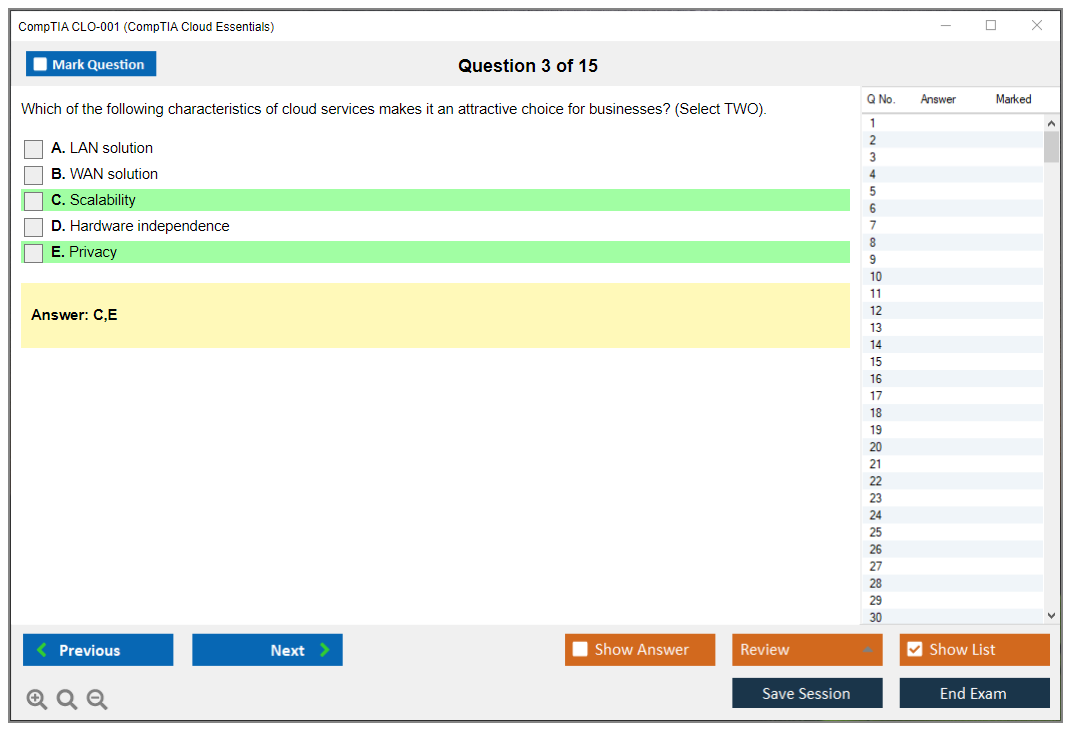 The CompTIA CLO-001 exam consists of 50 multiple-choice questions.