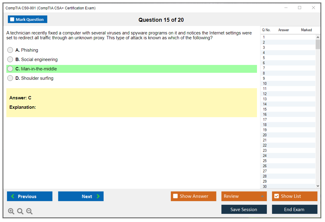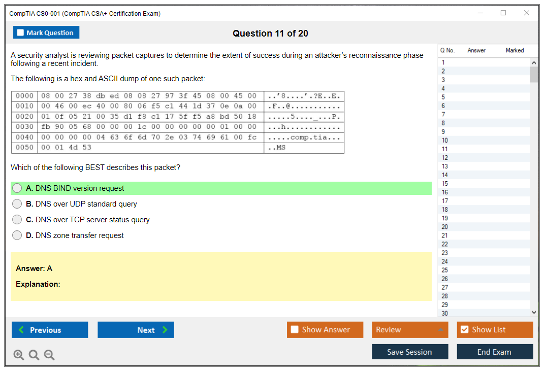 DumpsBoss was a lifesaver for my cs0-001 exam journey. Thanks to their comprehensive study guide and practice exams, I passed on the first try! The materials saved me tons of time by focusing on the most relevant topics. Big thanks to DumpsBoss for making this stressful process a breeze!