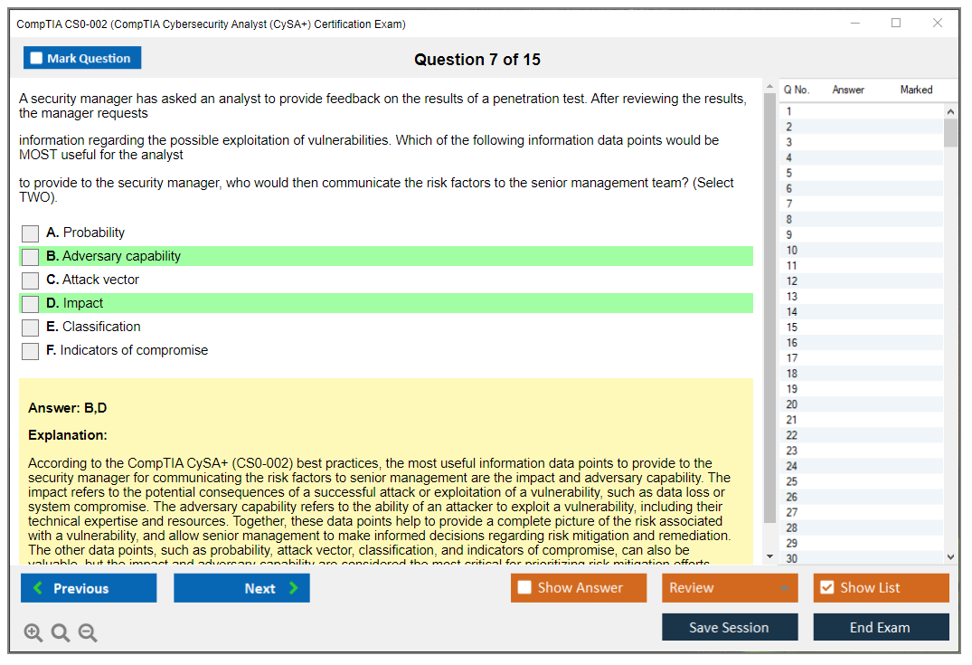 Highly recommend DumpsBoss for CS0-002 Exam preparation. Clear, concise, and effective study materials.