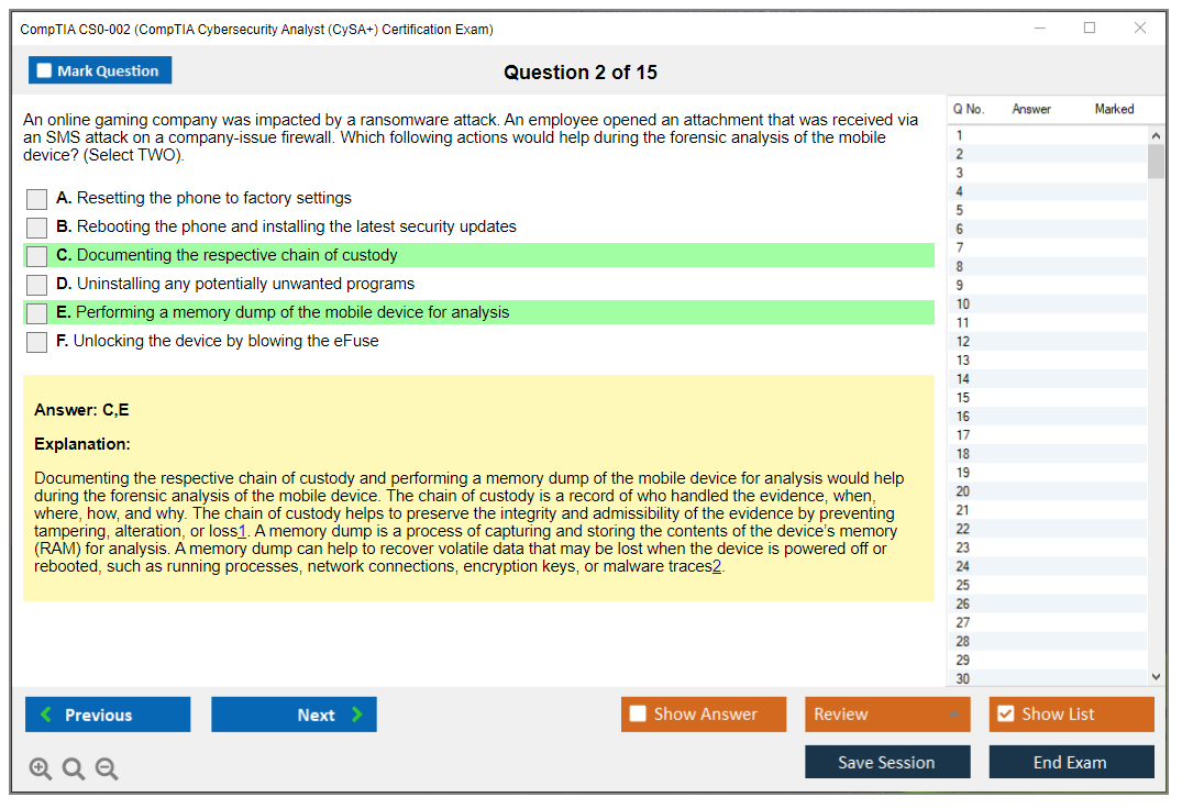 CS0-002 questions from DumpsBoss are a game-changer! The detailed explanations accompanying each question really helped me understand the concepts thoroughly. Thanks to these practice tests, I passed my exam with ease!