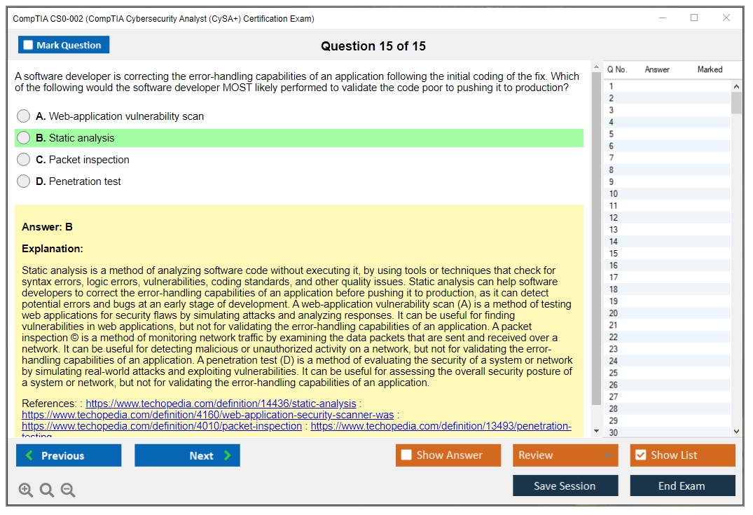 DumpsBoss CS0-002 exam dumps exceeded my expectations! The detailed explanations and practice questions were instrumental in my success. I've tried other sites before, but none compare to the quality and value offered here. Thanks to DumpsBoss, I'm now certified and ready to tackle new challenges in cybersecurity!