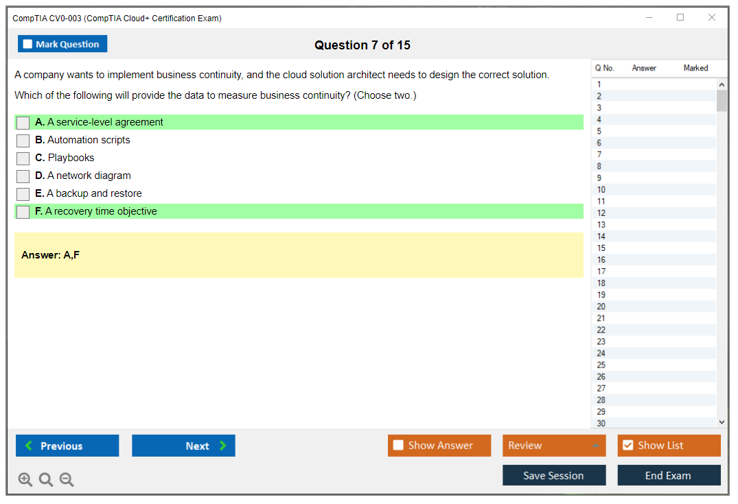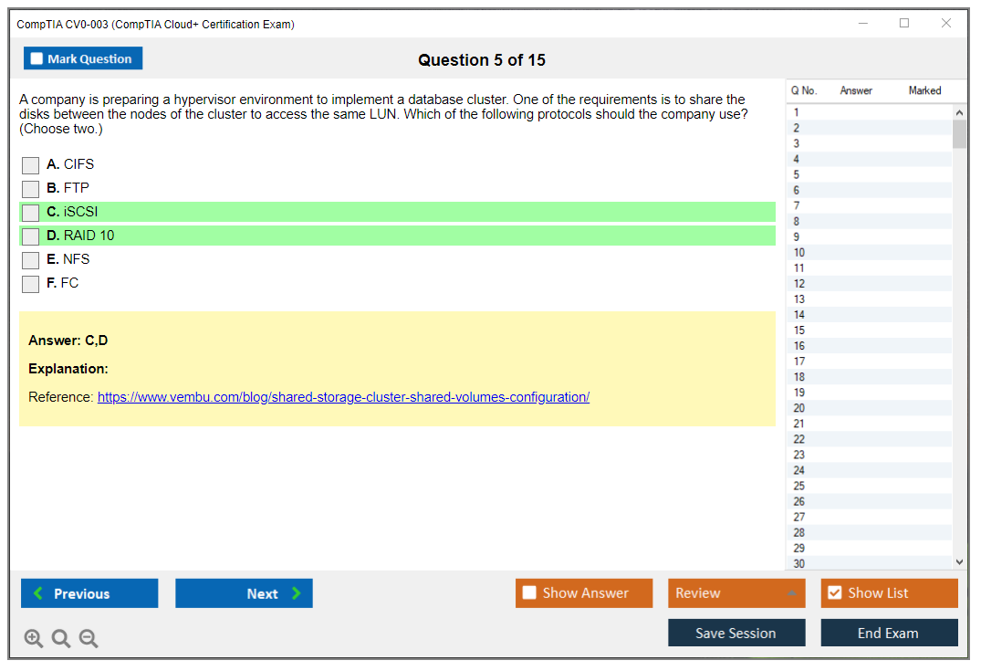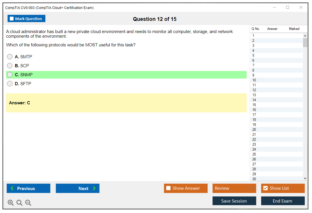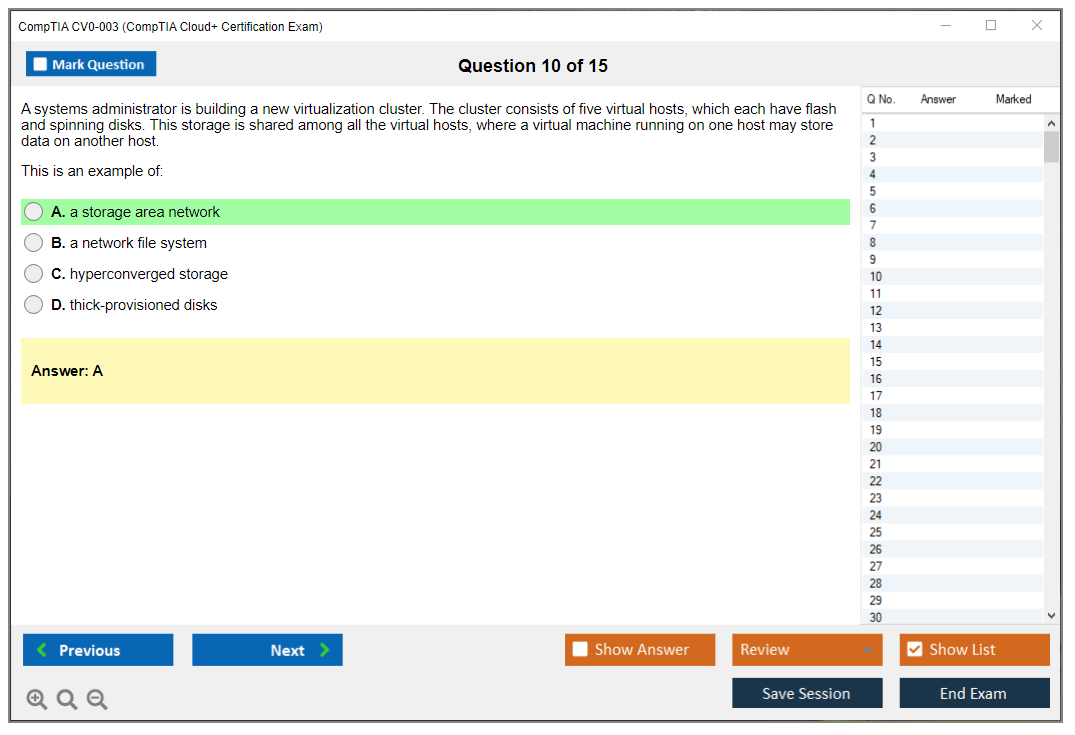 The question format of the CompTIA CV0-003 Exam includes multiple-choice questions (both single and multiple response), drag and drop, and performance-based questions (PBQs).