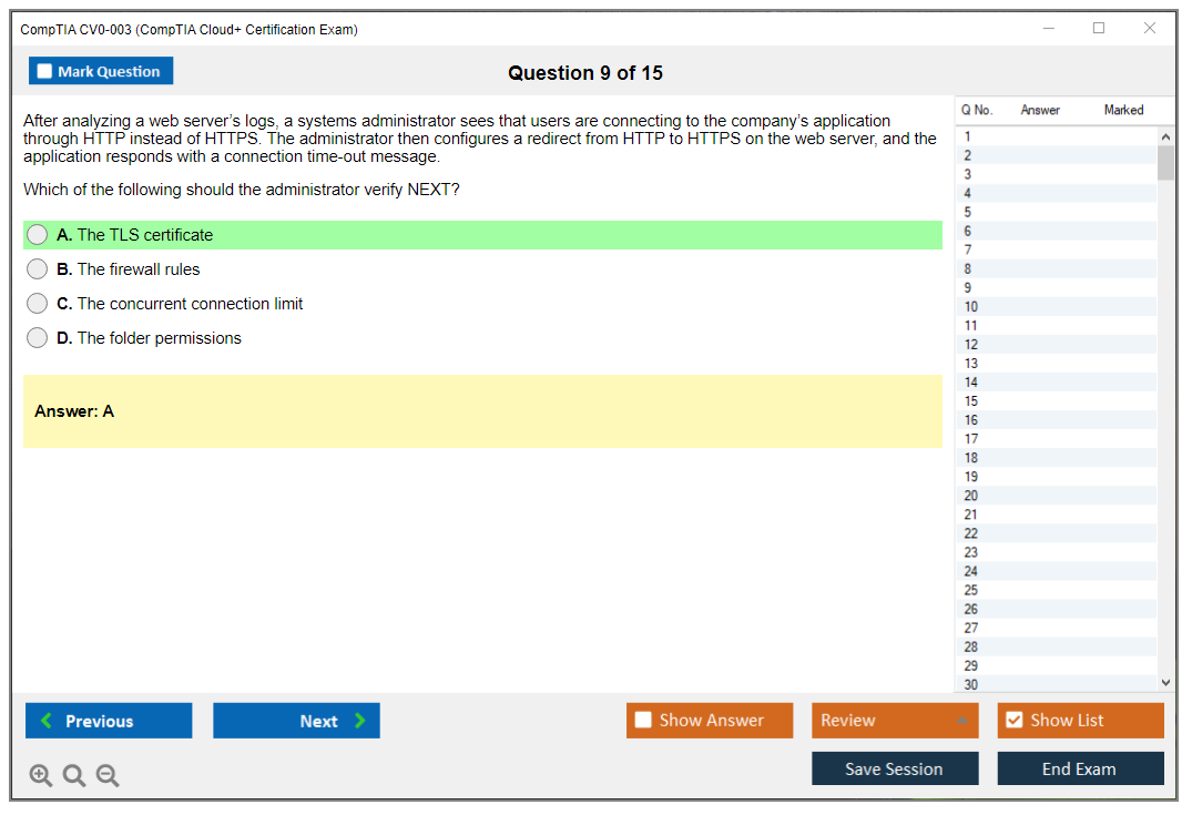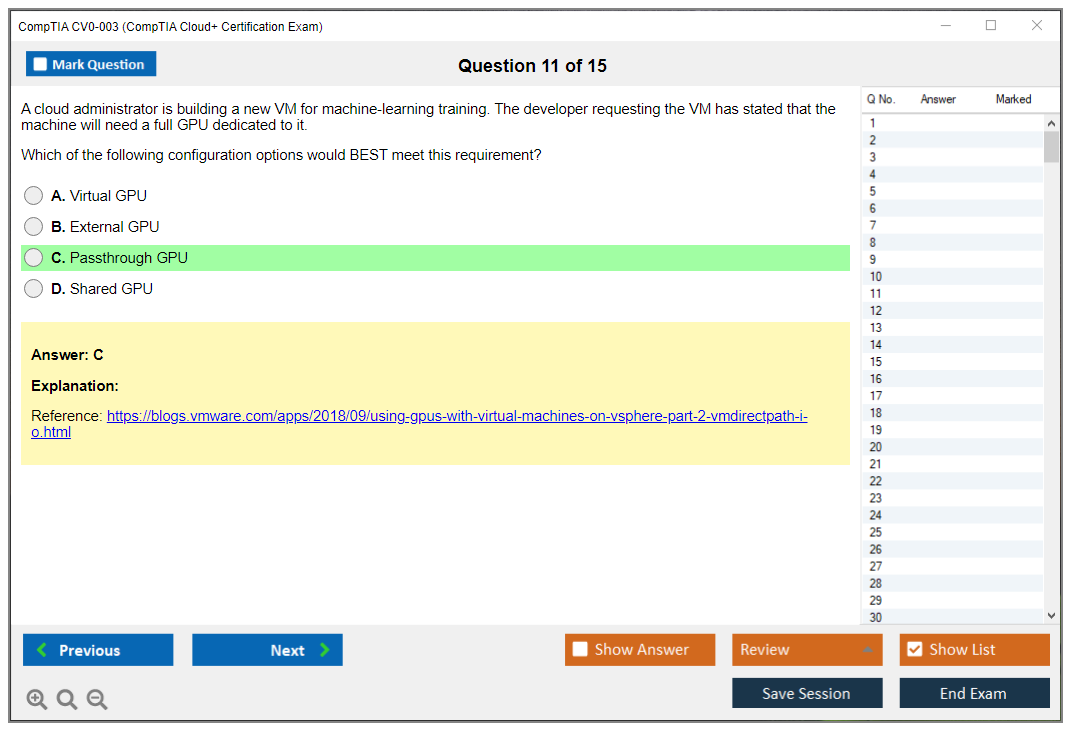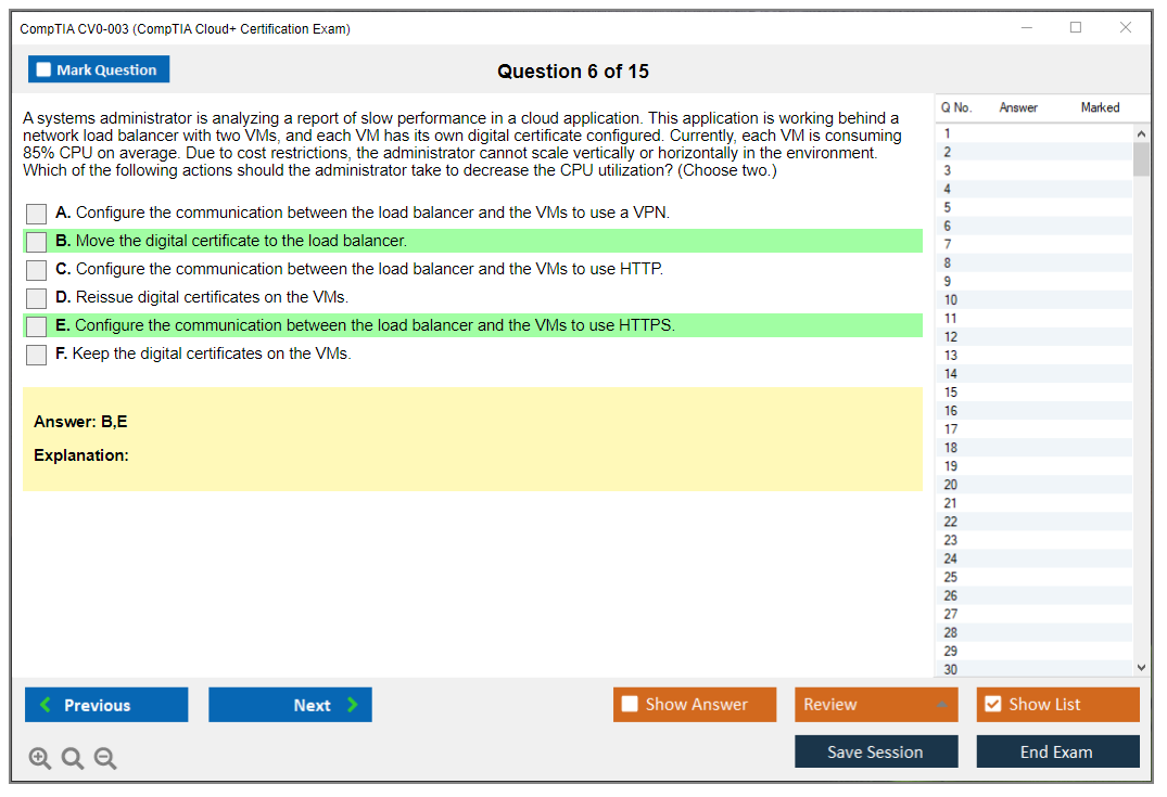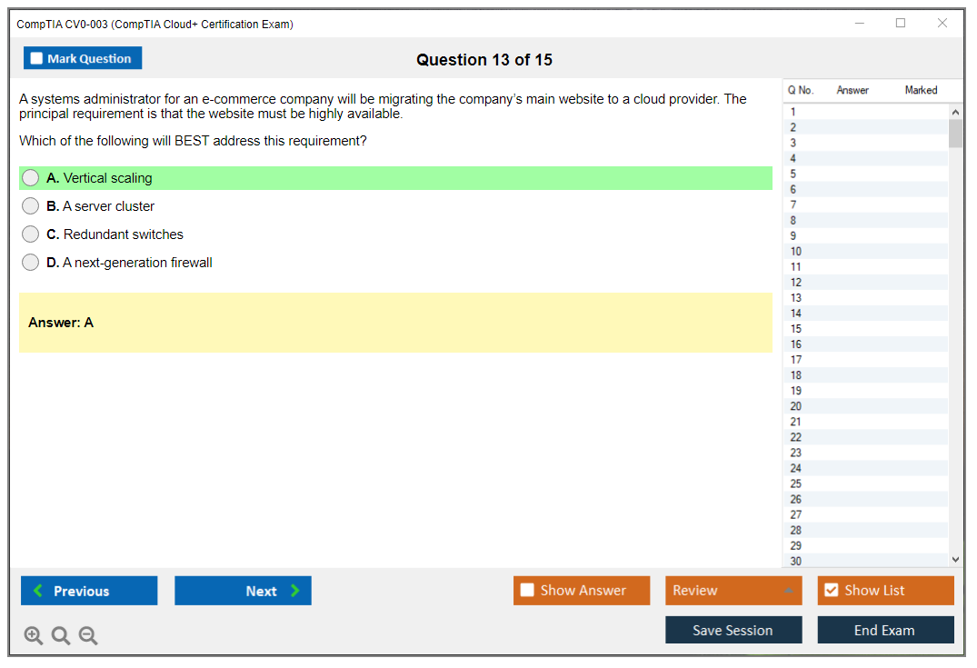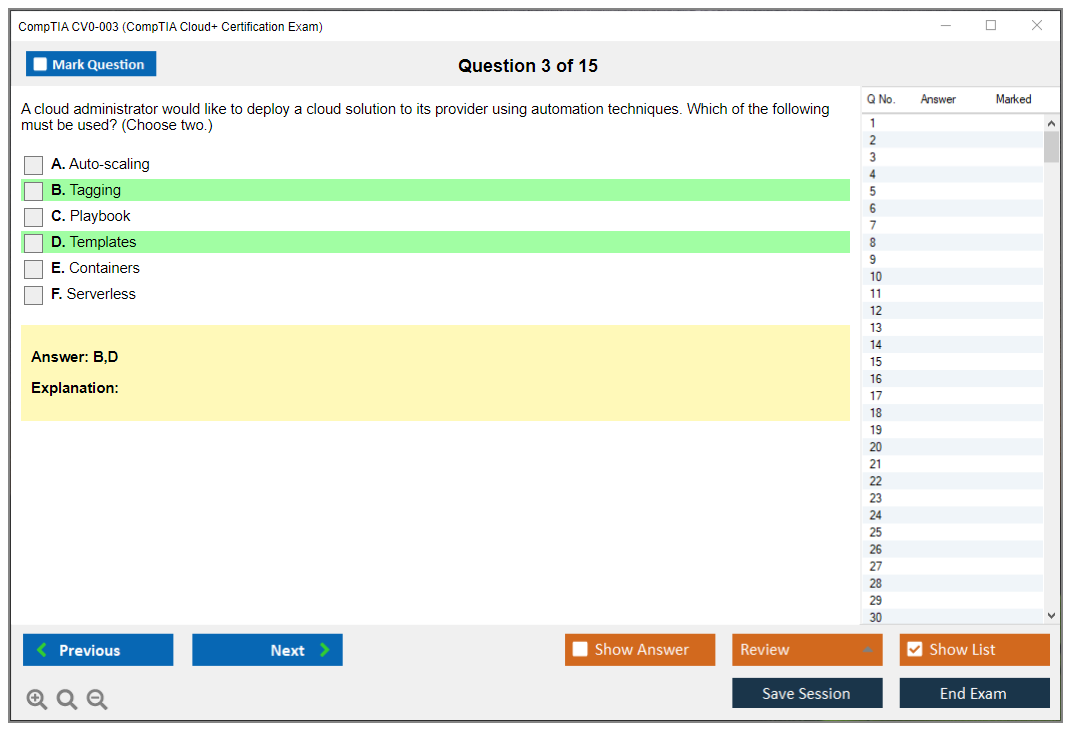 The question format of the CompTIA CV0-003 Exam includes multiple-choice questions (both single and multiple response), drag and drop, and performance-based questions (PBQs).