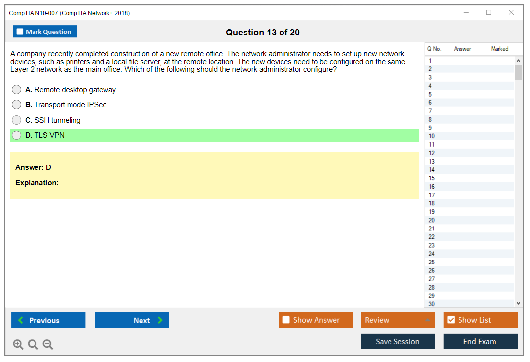 The CompTIA N10-007 (CompTIA Network+ 2018) exam is a certification test designed to validate the essential knowledge and skills needed to confidently design, configure, manage, and troubleshoot any wired and wireless networks. It is aimed at IT professionals who want to demonstrate their expertise in network technologies and concepts.