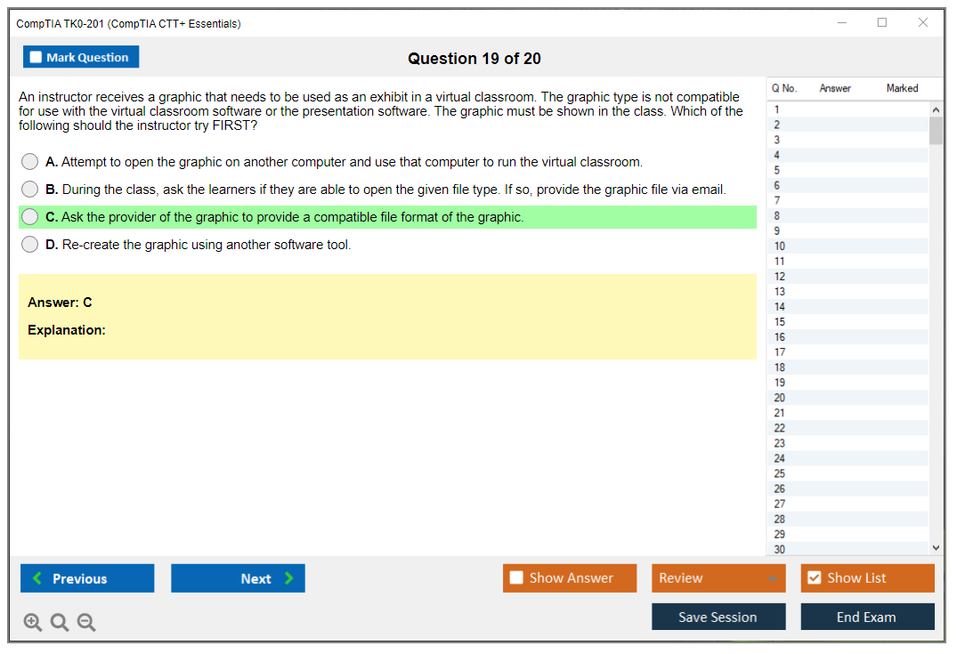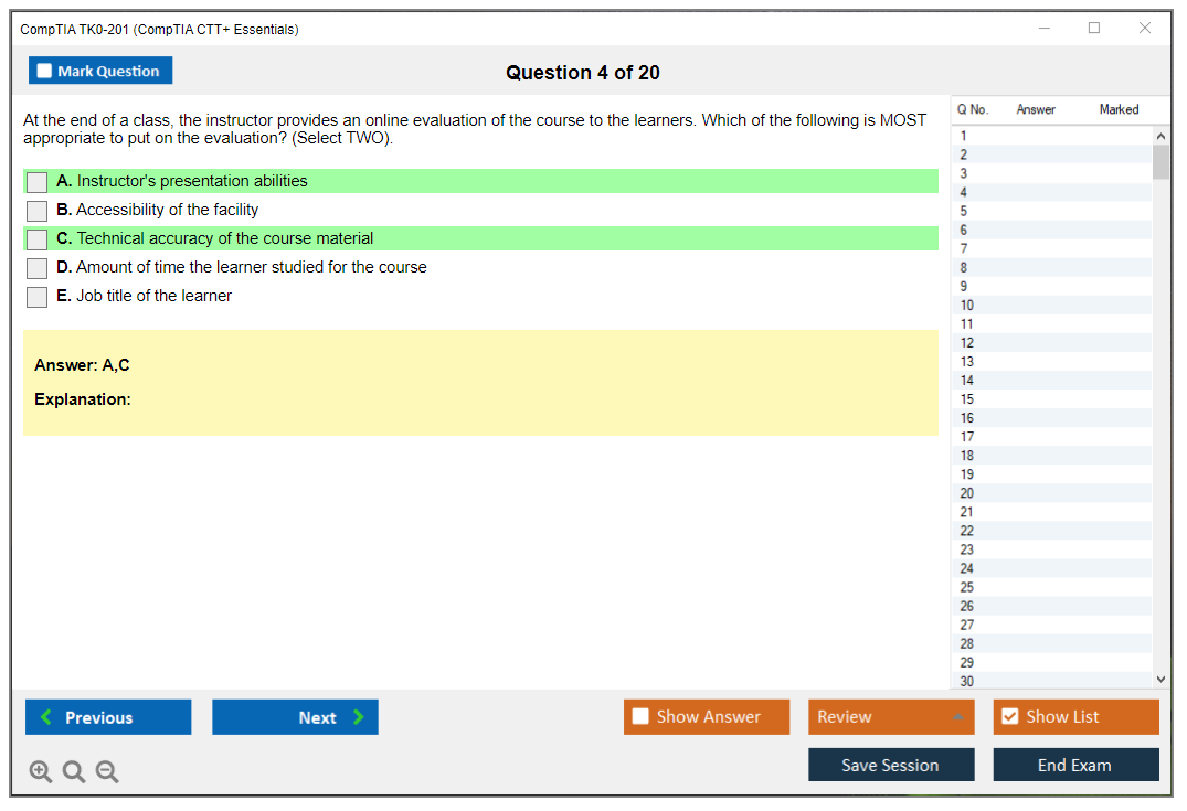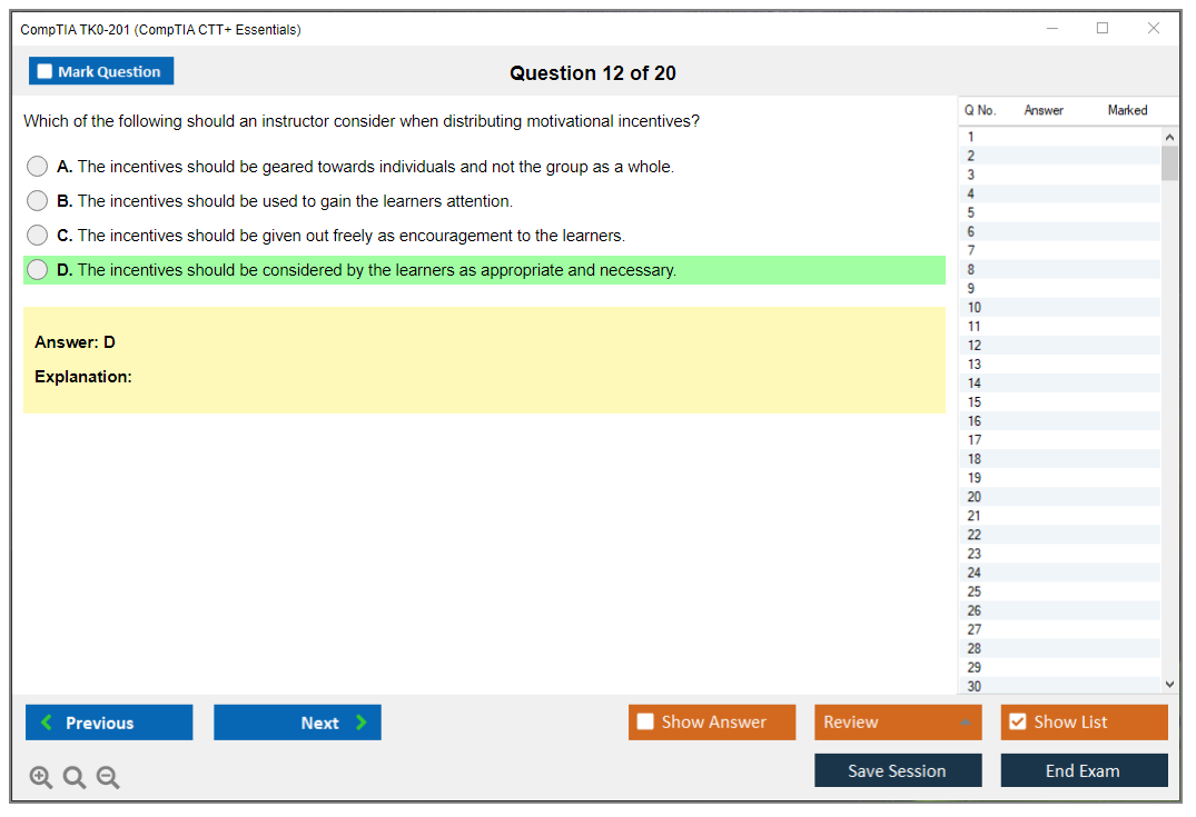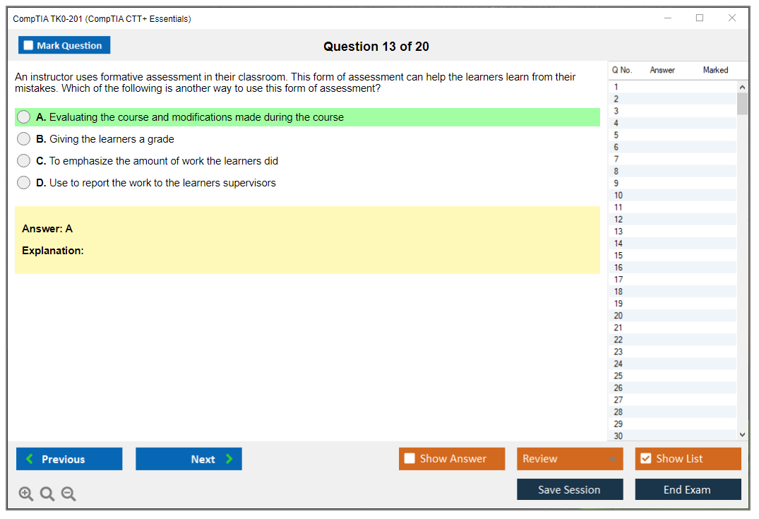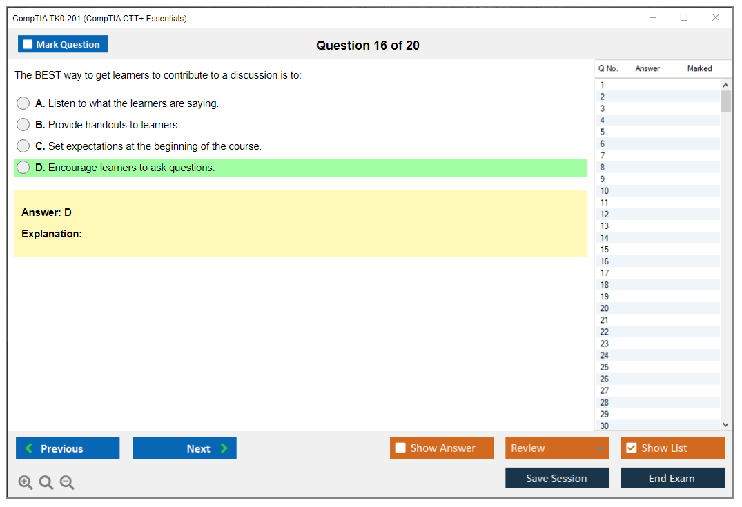 The CompTIA TK0-201 Exam is part of the CompTIA CTT+ certification, which is aimed at validating the teaching skills of instructors. The exam assesses the ability to effectively teach and manage a classroom or virtual environment.