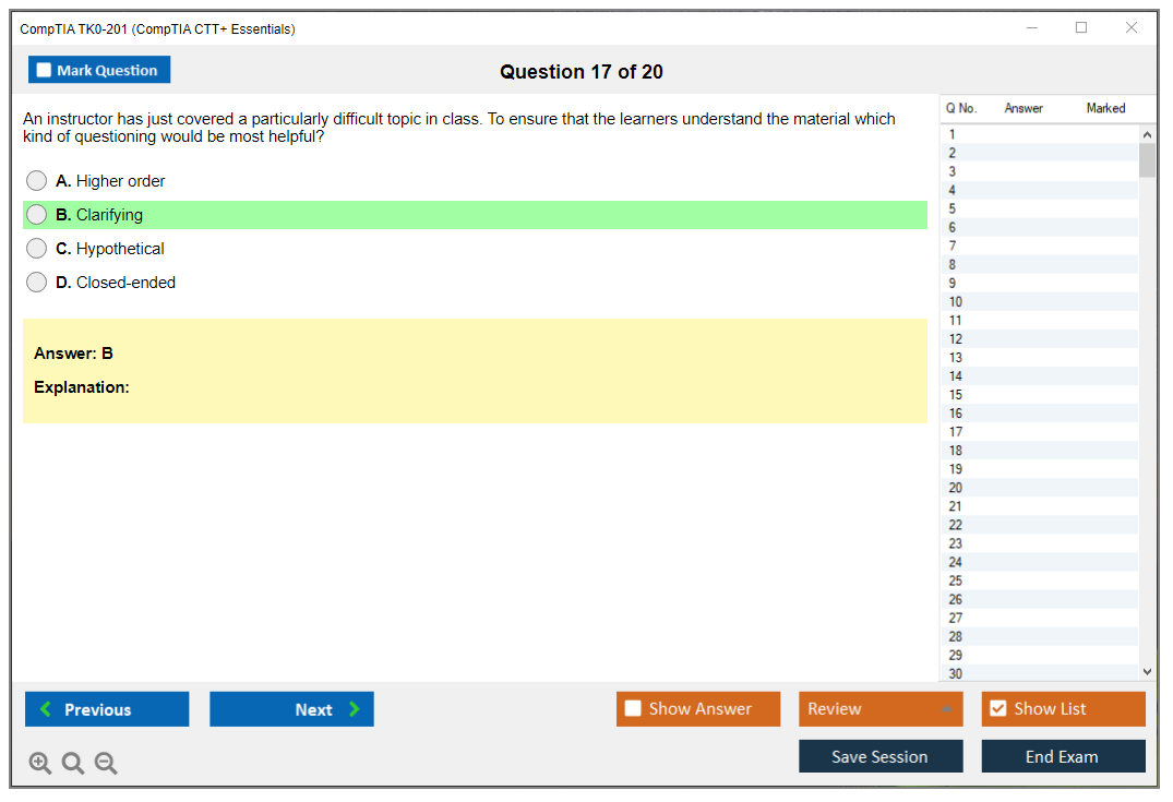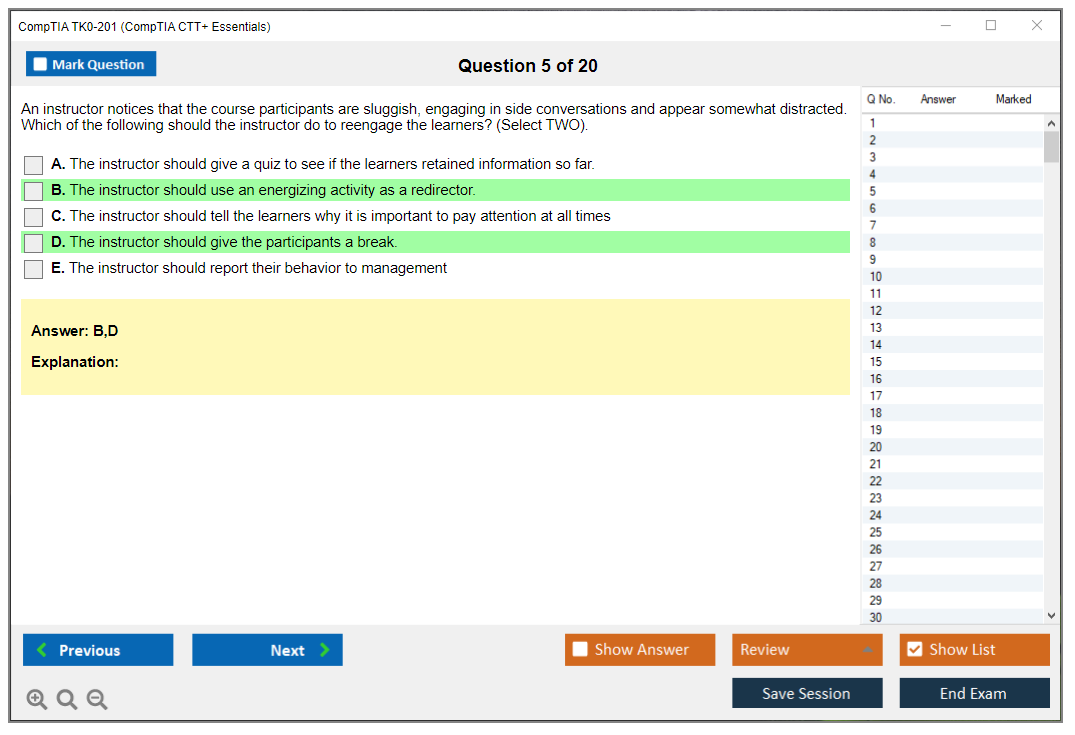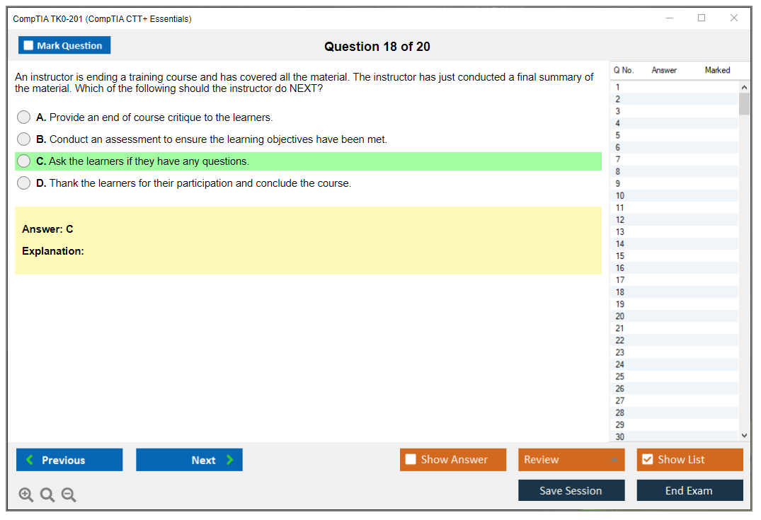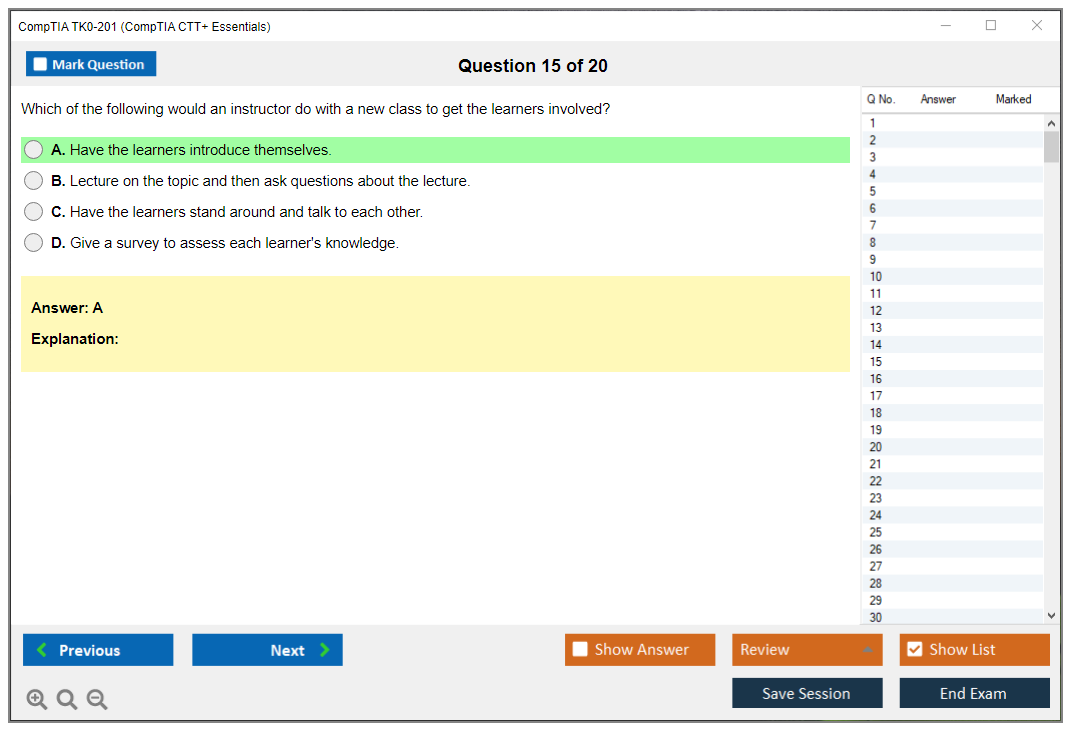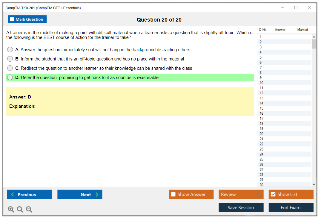 The CompTIA TK0-201 Exam is part of the CompTIA CTT+ certification, which is aimed at validating the teaching skills of instructors. The exam assesses the ability to effectively teach and manage a classroom or virtual environment.
