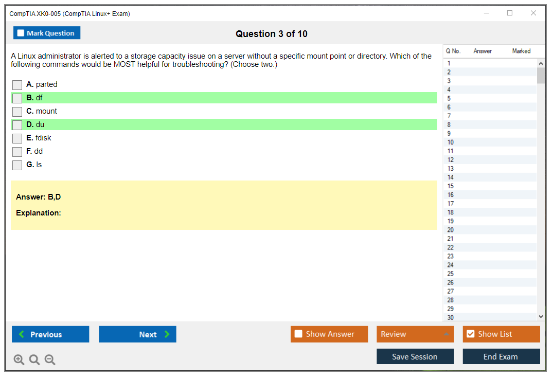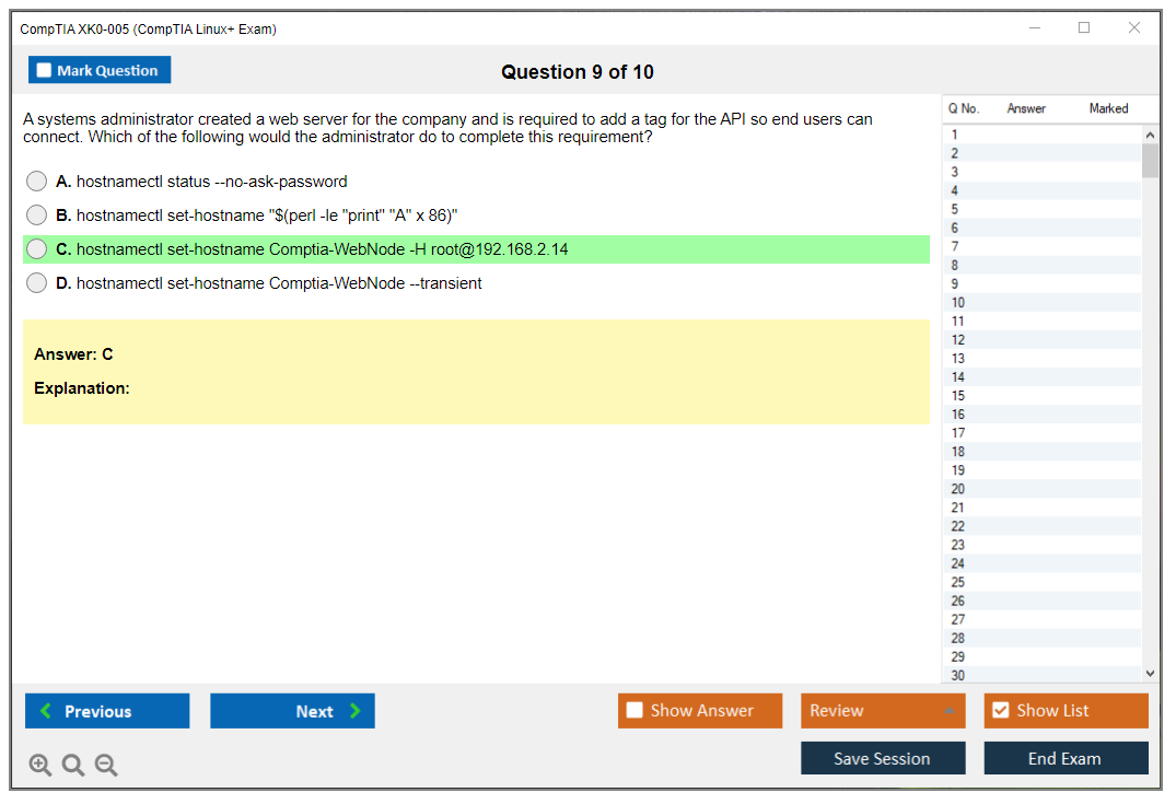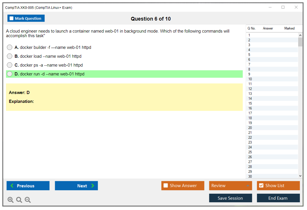 The question format of the CompTIA XK0-005 Exam includes multiple-choice questions (single and multiple response), drag and drops, and performance-based questions.