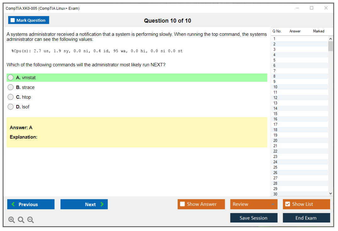 The CompTIA XK0-005 (CompTIA Linux+ Exam) is a certification exam designed to validate the skills and knowledge required to perform common tasks in major distributions of Linux, including the Linux command line, basic maintenance, installing and configuring workstations, and networking.