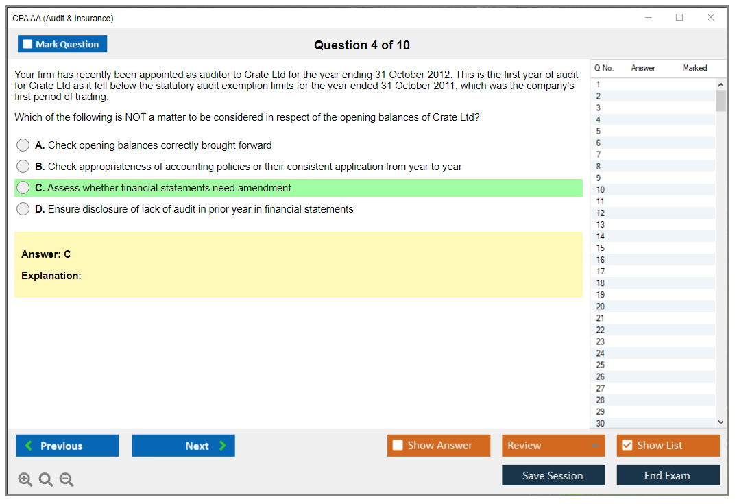 The CPA AA Exam evaluates candidates on their understanding of auditing standards, procedures, and insurance-related financial reporting. It is part of the broader CPA qualification process and focuses specifically on audit and insurance topics.