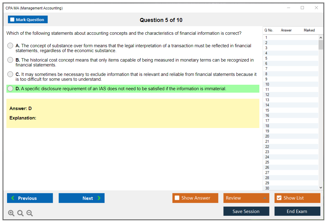 Impressed by the quality of CPA MA Exam material on DumpsBoss. Simplified my study routine