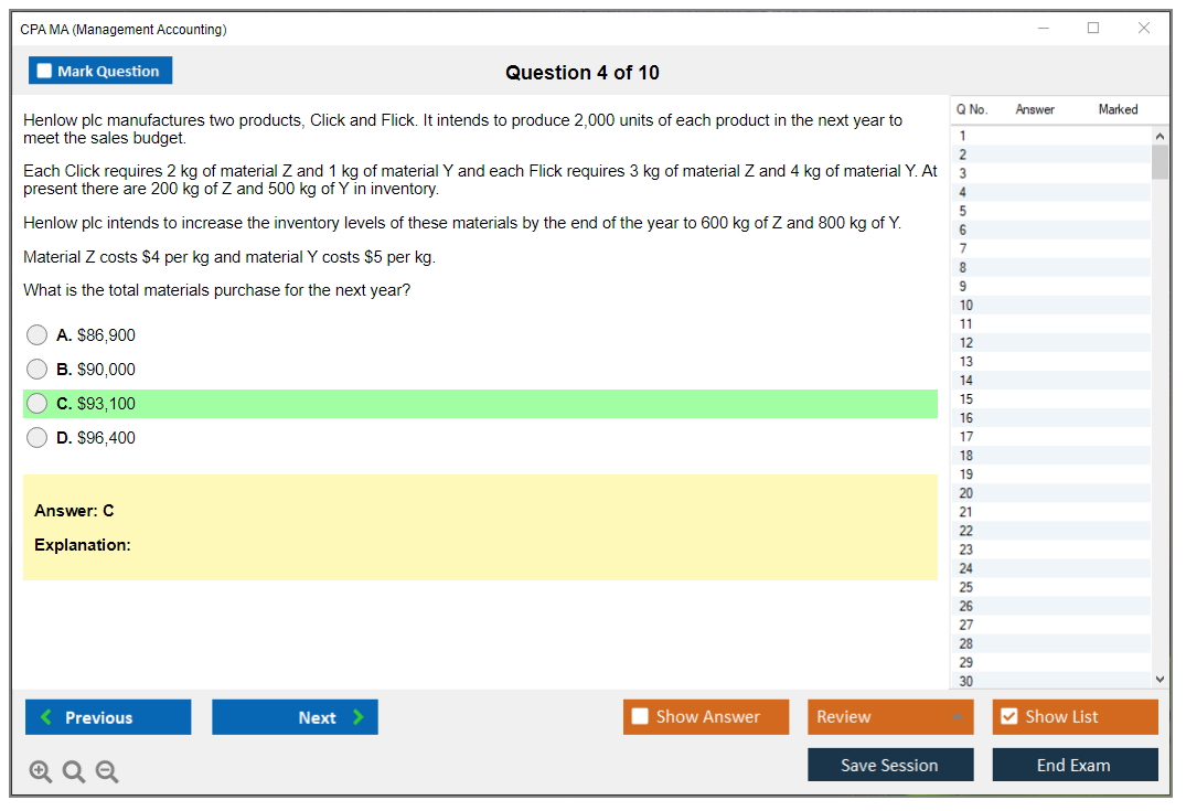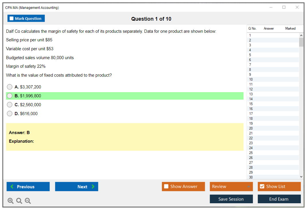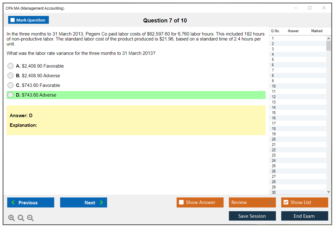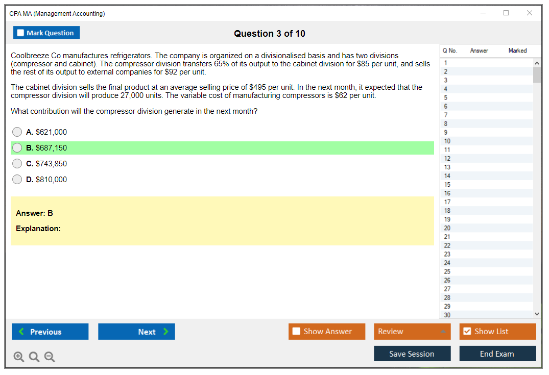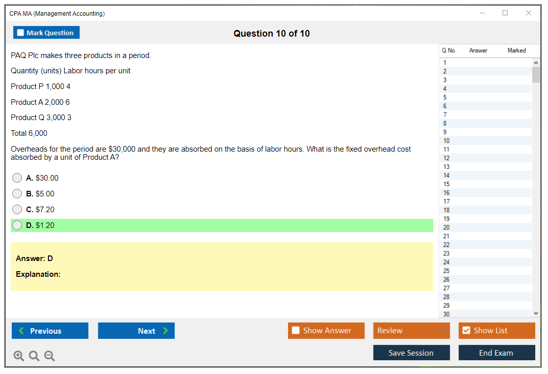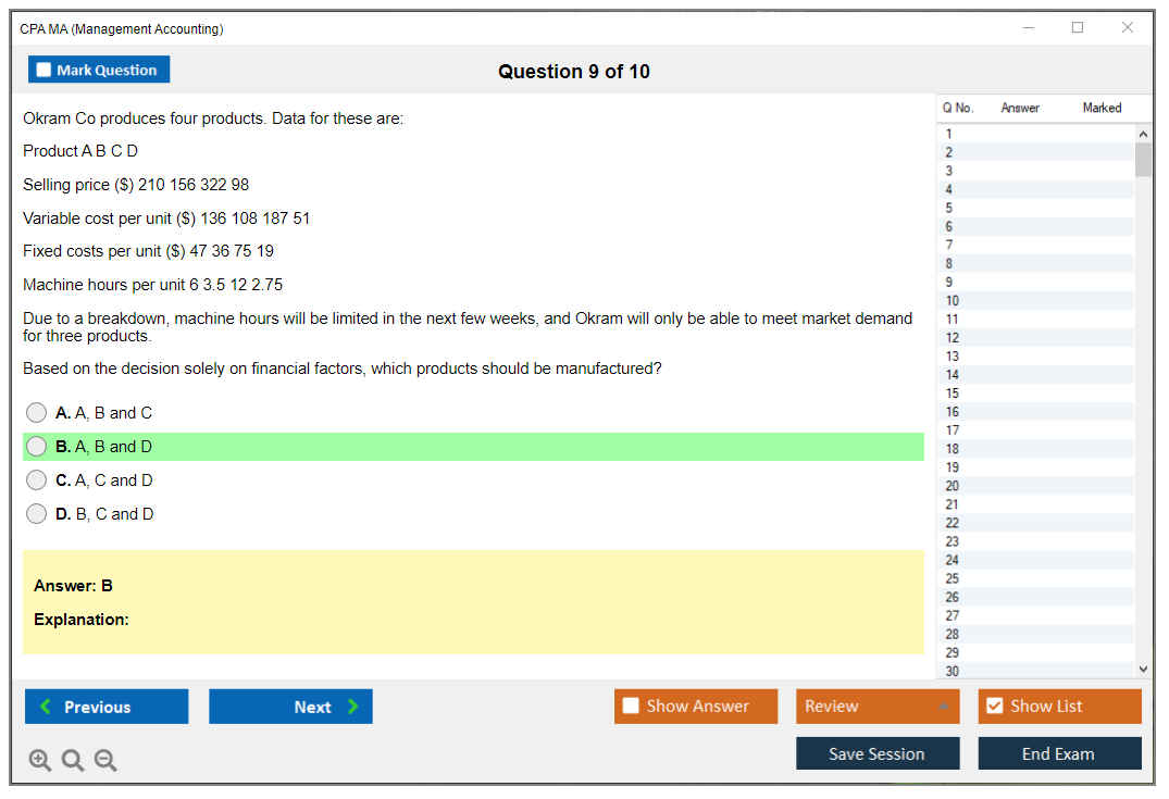 DumpsBoss delivers exceptional CPA MA Management Accounting questions that are spot-on for exam preparation. Their detailed explanations and practice questions made all the difference!