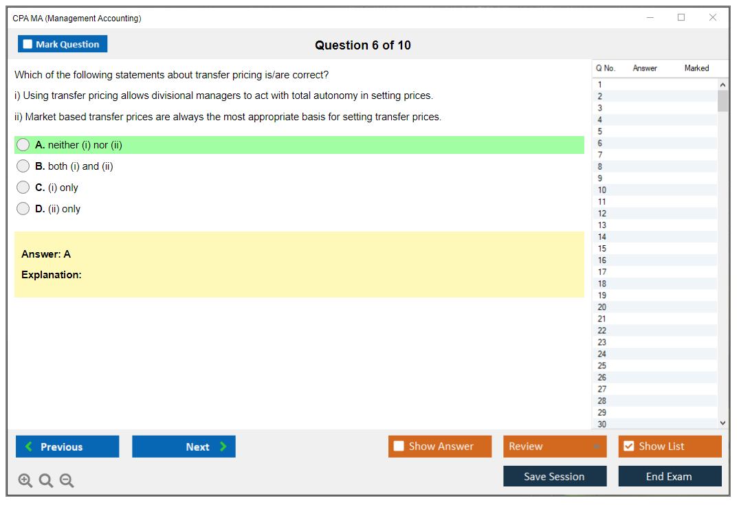 DumpsBoss provides an outstanding CPA MA (Management Accounting) Certification product. The quality of the practice tests and study materials is unmatched, making exam prep efficient and thorough!
