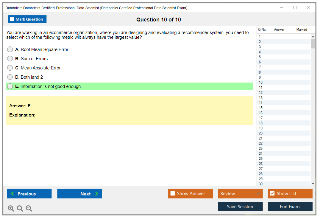 What are the Sample Questions of Databricks Databricks-Certified-Professional-Data-Scientist Exam?