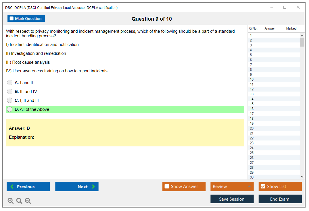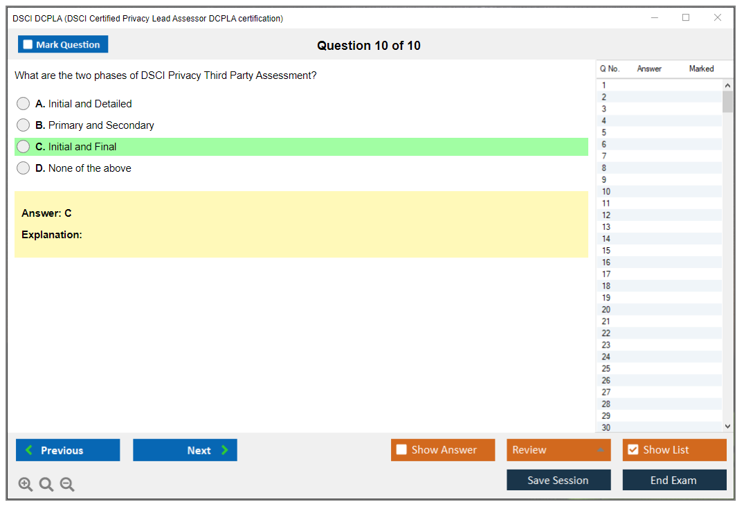 The DSCI Certified Privacy Lead Assessor (DCPLA) Exam is a certification offered by the Data Security Council of India (DSCI) aimed at validating the knowledge and skills of professionals in the field of privacy and data protection.