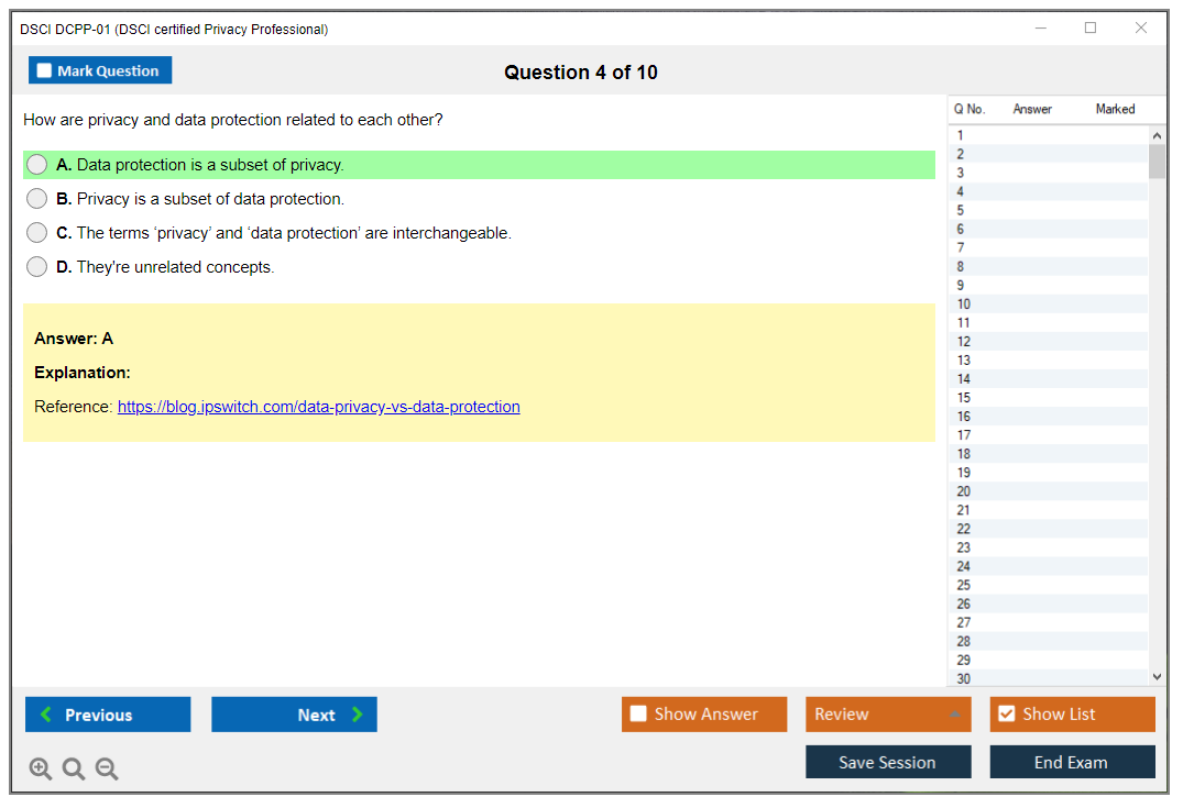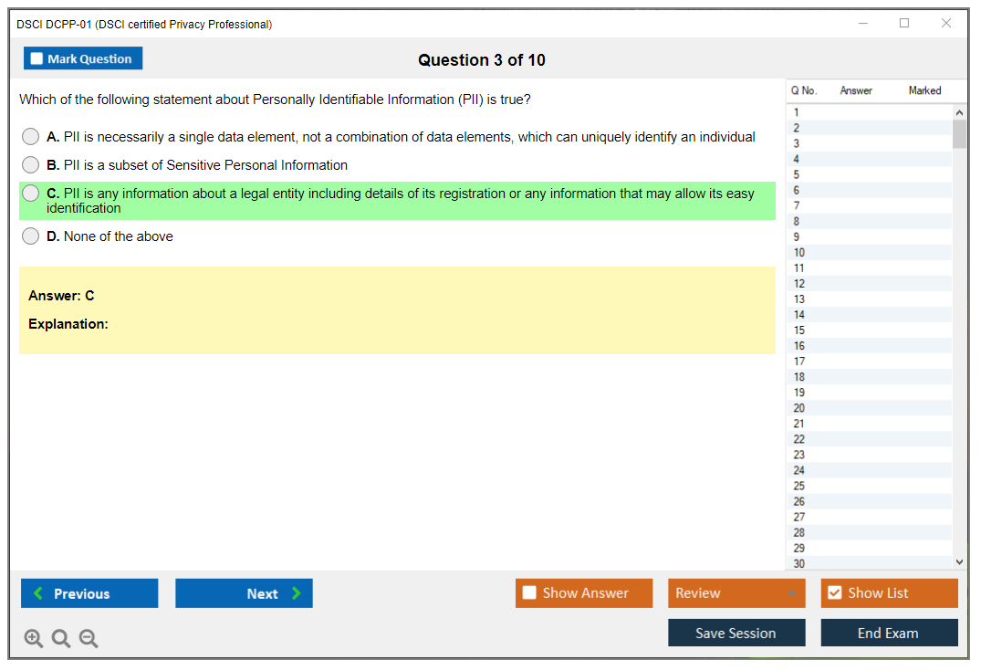 The DSCI DCPP-01 (DSCI certified Privacy Professional) Exam is a certification exam conducted by the Data Security Council of India (DSCI). It is designed to validate the knowledge and skills of professionals in the field of data privacy and protection.