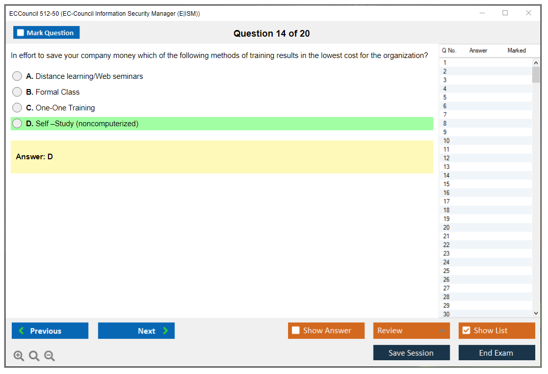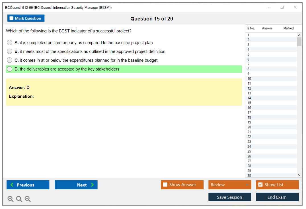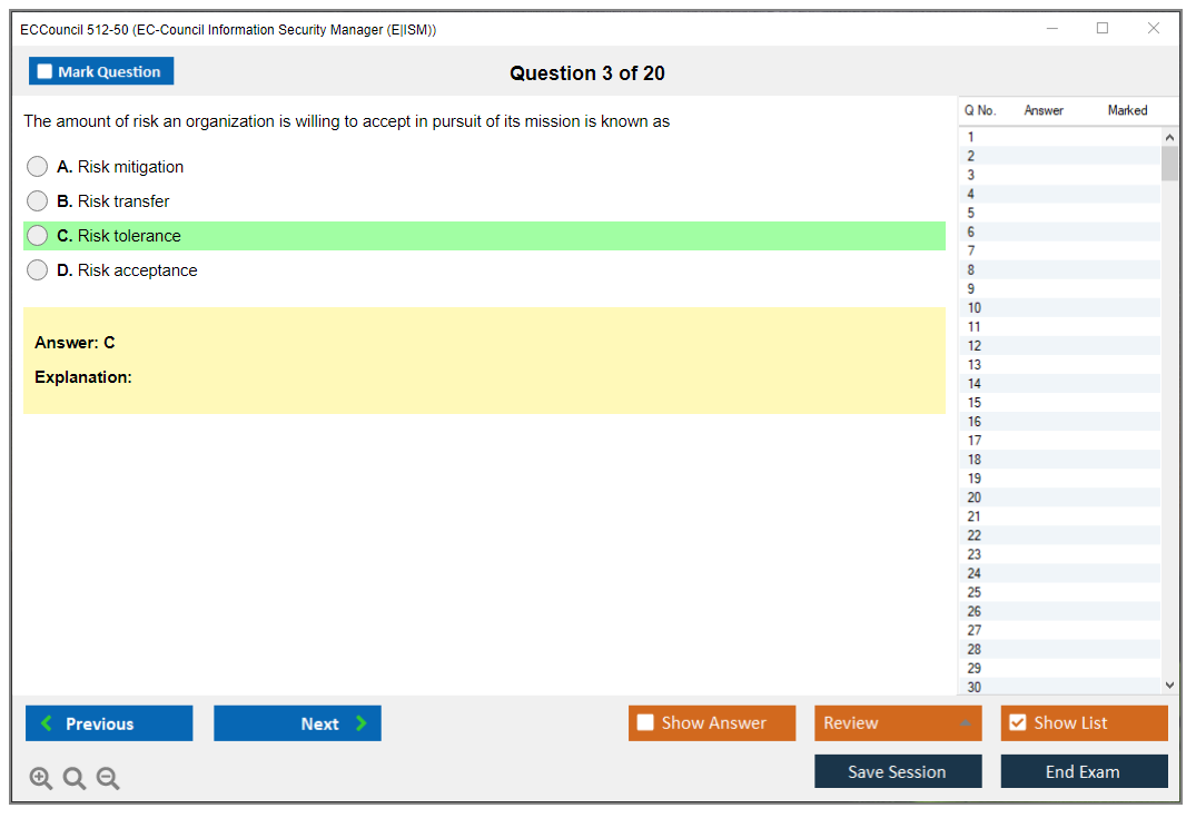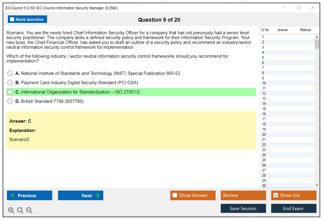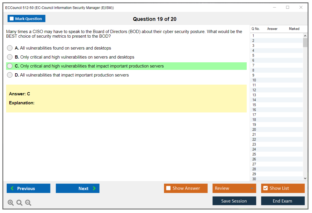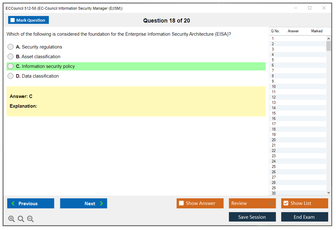 The ECCouncil 512-50, also known as the EC-Council Information Security Manager (E|ISM) exam, is designed to validate the skills and knowledge of professionals in the field of information security management. This certification focuses on the strategic aspects of information security, including governance, risk management, and compliance.