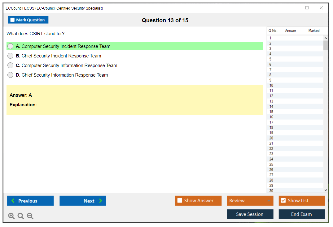 The ECCouncil ECSS (EC-Council Certified Security Specialist) Exam is a certification exam designed to validate the knowledge and skills of individuals in the field of information security, network security, and computer forensics.