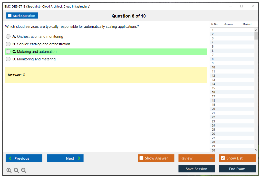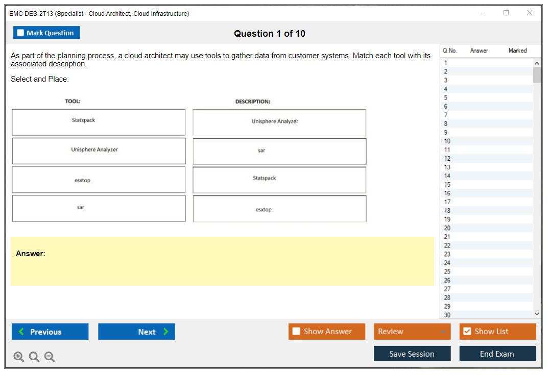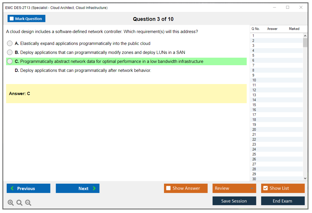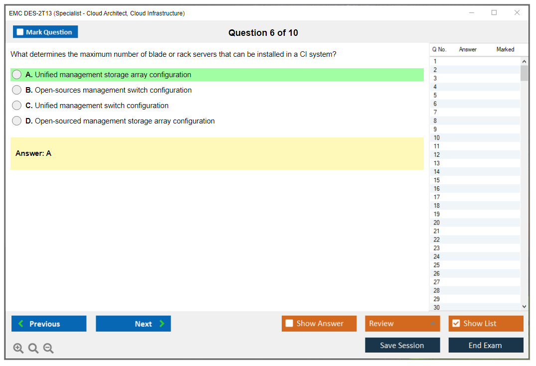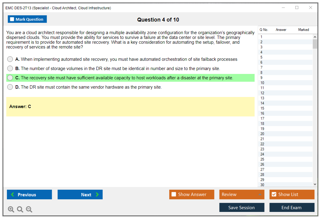 The EMC DES-2T13 (Specialist – Cloud Architect, Cloud Infrastructure Exam) is designed for professionals who want to validate their expertise in cloud infrastructure and architecture. It focuses on advanced cloud concepts, including design, deployment, and management of cloud infrastructure solutions.