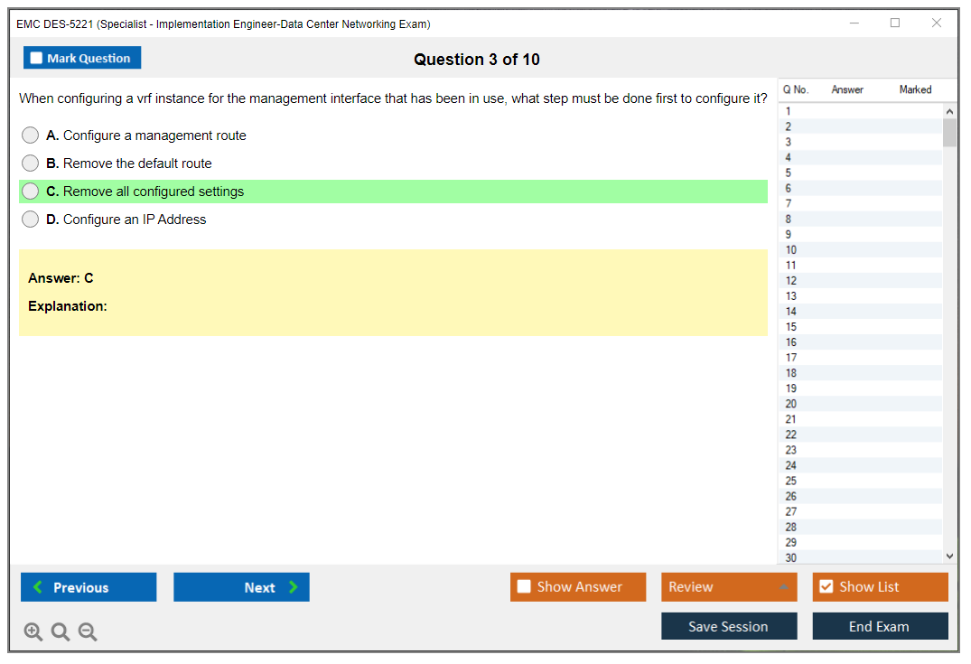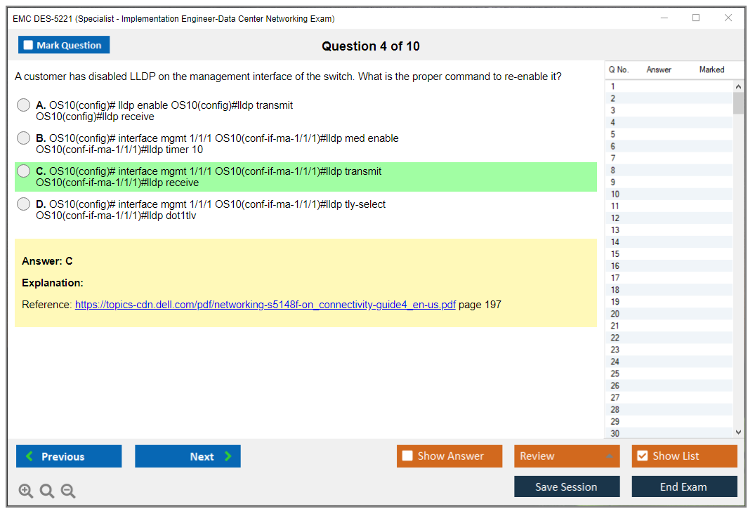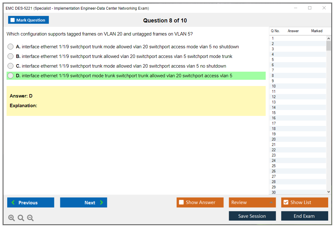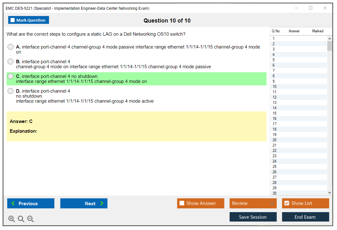 The EMC DES-5221 (Specialist Implementation Engineer Data Center Networking Exam) is designed to validate the knowledge and skills required to implement data center networking solutions. This exam focuses on the deployment, configuration, and management of data center networks using Dell EMC technologies.