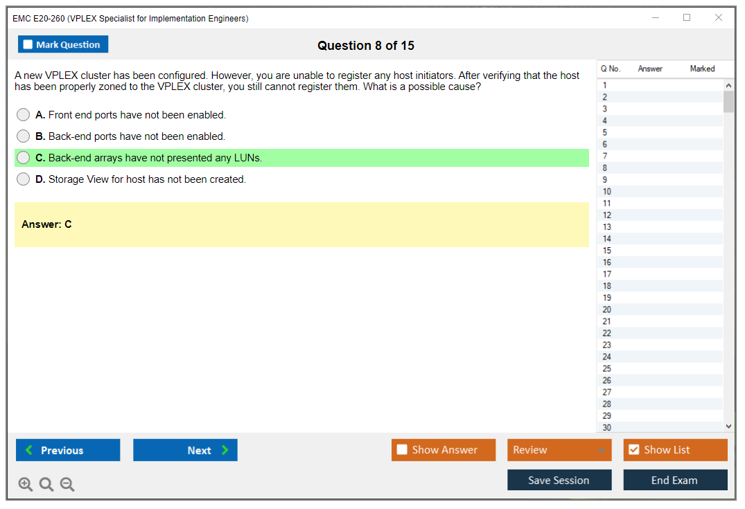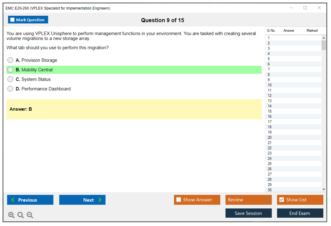 The EMC E20-260 exam is a specialist-level certification exam that focuses on the implementation and management of EMC VPLEX systems. It is intended for engineers who are responsible for deploying and maintaining these systems.
