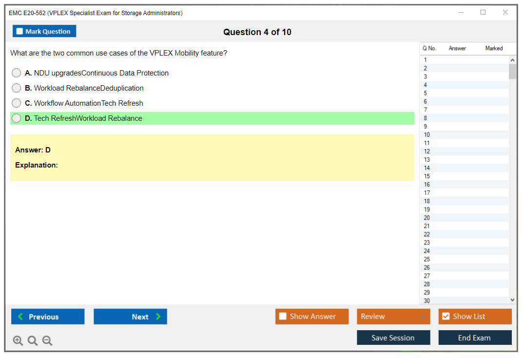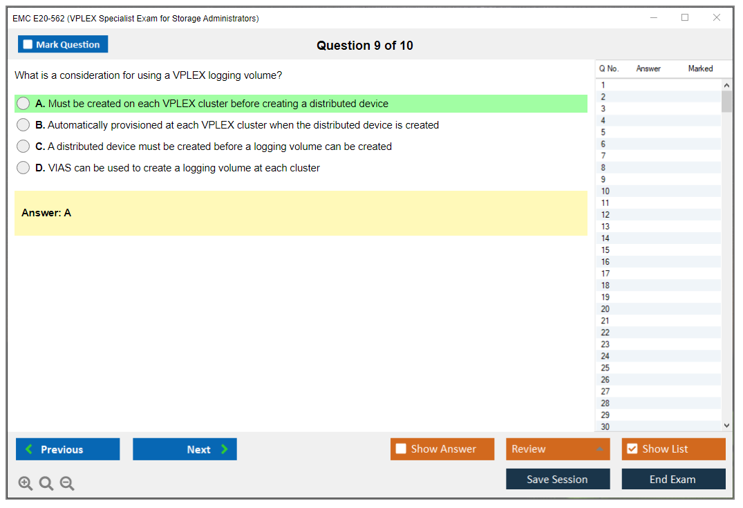 The EMC E20-562 (VPLEX Specialist Exam for Storage Administrators) is designed to validate the skills and knowledge required to manage and operate EMC VPLEX systems. This certification demonstrates the ability to deploy, configure, and manage VPLEX environments, ensuring high availability and data mobility across multiple sites.