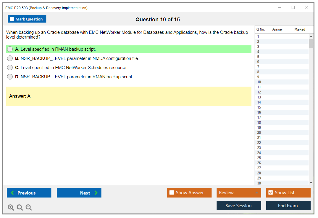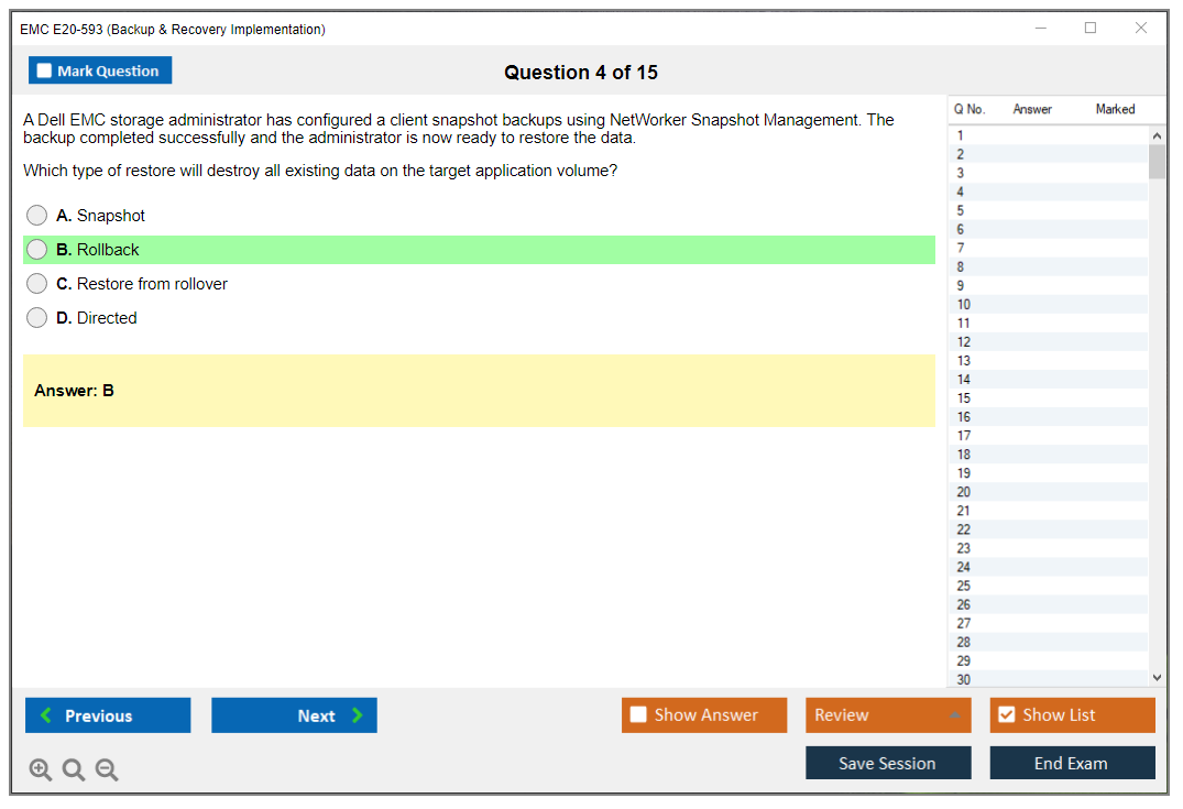 The EMC E20-593 (Backup & Recovery Implementation) Exam is designed to validate the knowledge and skills necessary to implement, configure, and manage EMC backup and recovery solutions.