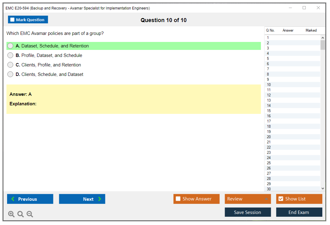 E20-594 (Backup and Recovery - Avamar Specialist Exam for Implementation Engineers) PDF + Test Engine