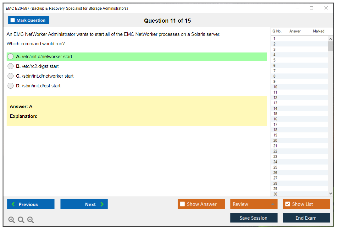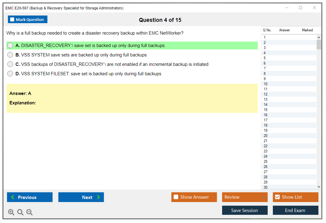 The EMC E20-597 (Backup & Recovery Specialist for Storage Administrators) Exam is designed to validate the knowledge and skills required to deploy, configure, and manage EMC backup and recovery solutions. This certification focuses on various EMC technologies and products, ensuring that professionals can effectively handle backup and recovery tasks in enterprise environments.