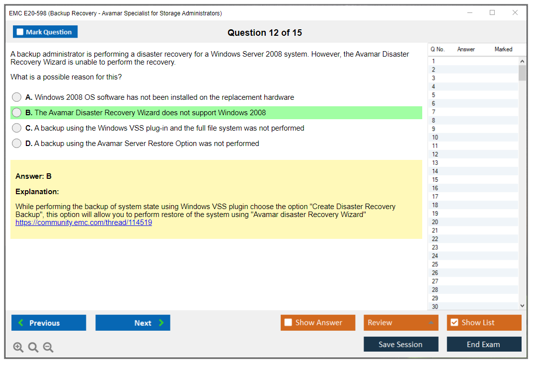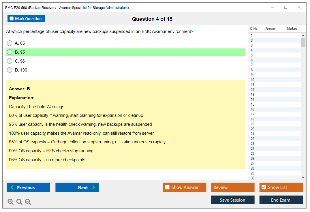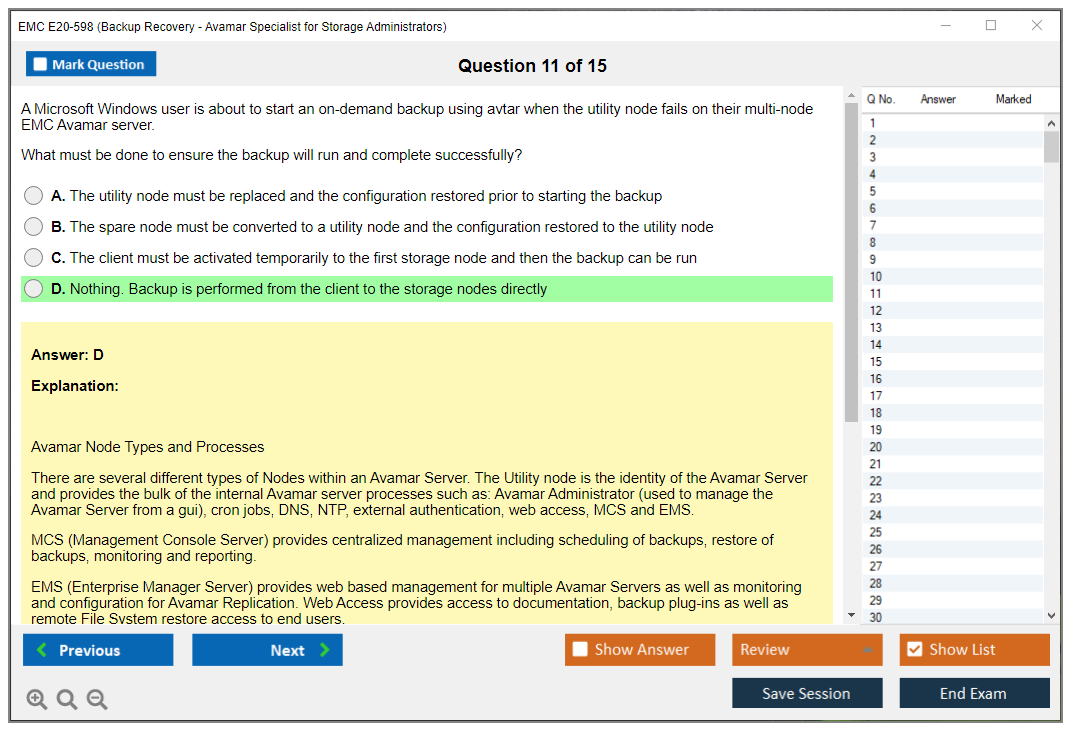 The EMC E20-598 Exam requires a specialist-level competency in backup and recovery solutions, particularly with EMC Avamar.