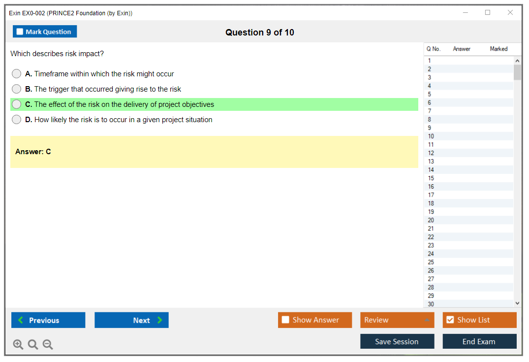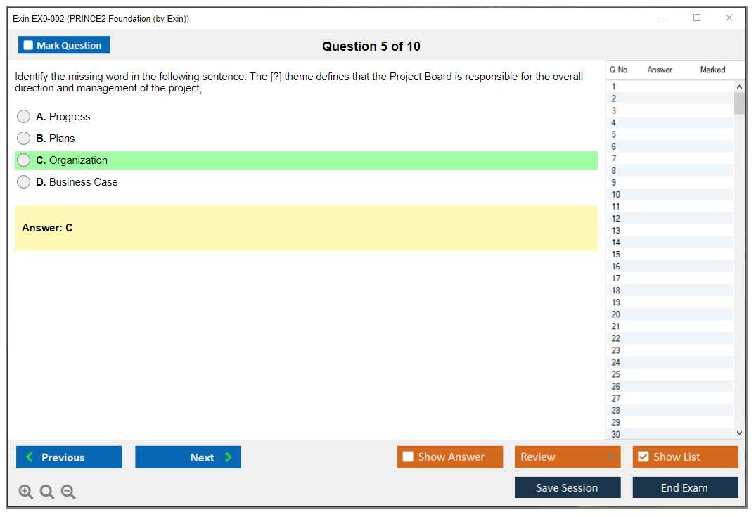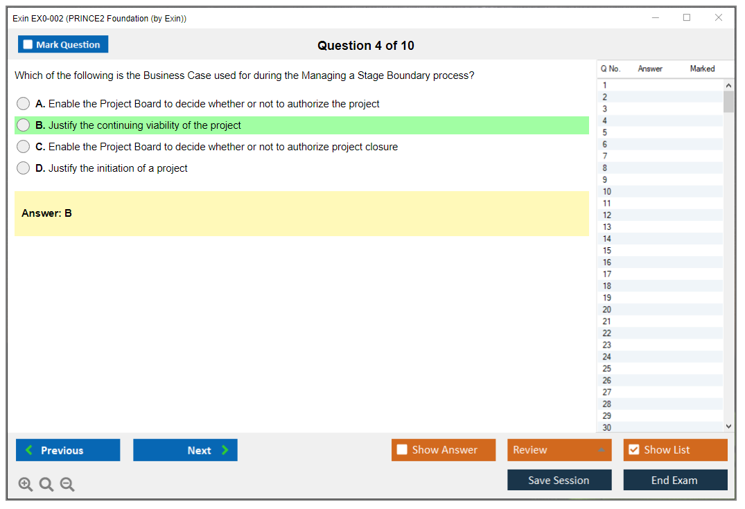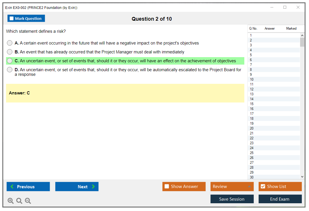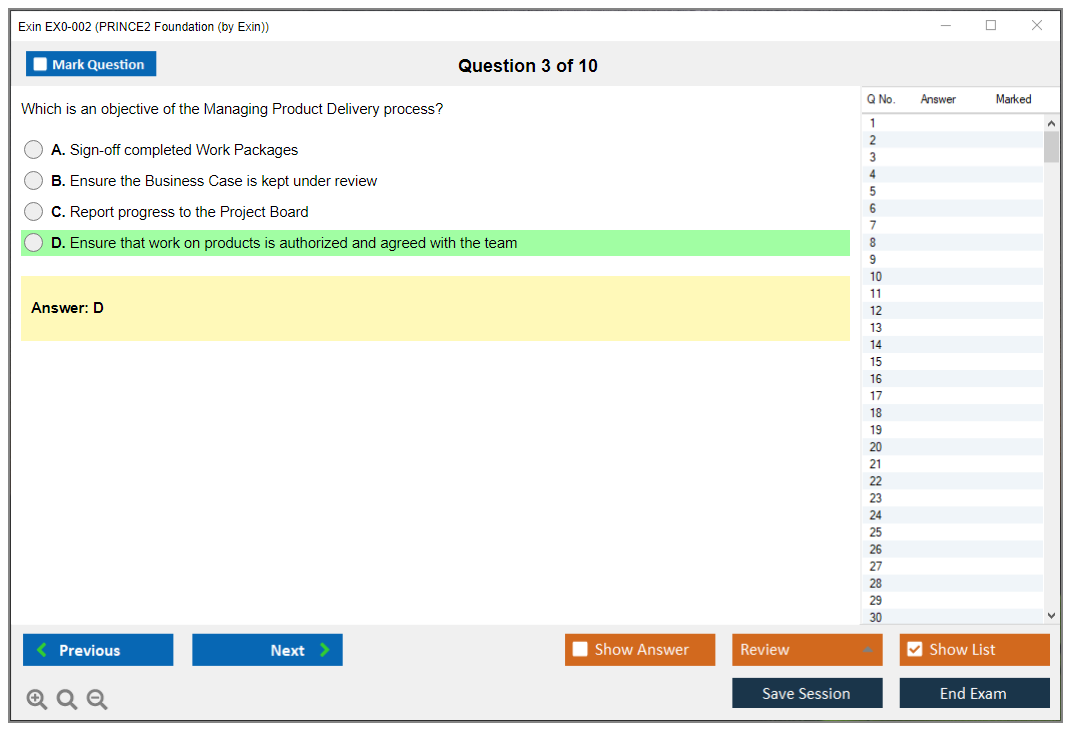The Exin EX0-002 (PRINCE2 Foundation) exam is designed to test the candidate's knowledge of the PRINCE2 methodology, a structured project management method. It covers the principles, themes, and processes of PRINCE2 and aims to ensure that candidates understand how to apply them in a project environment.