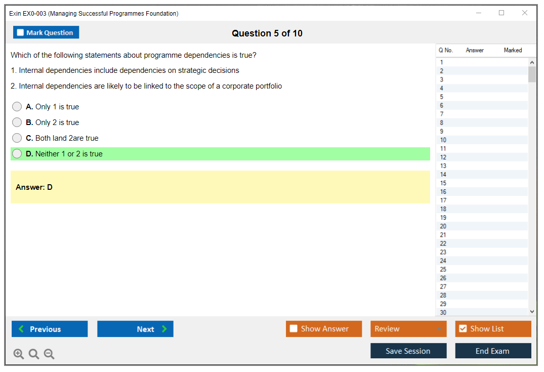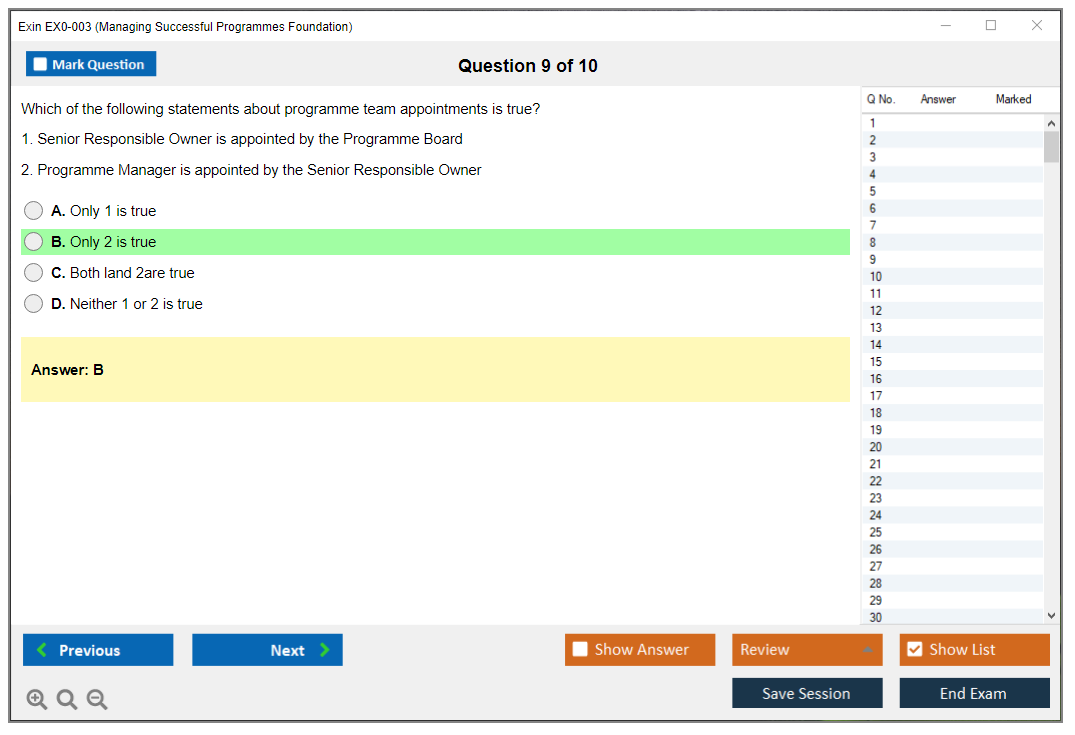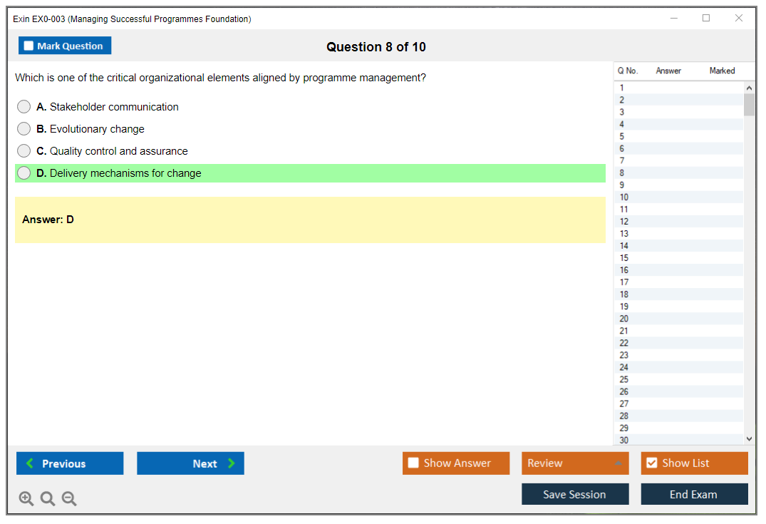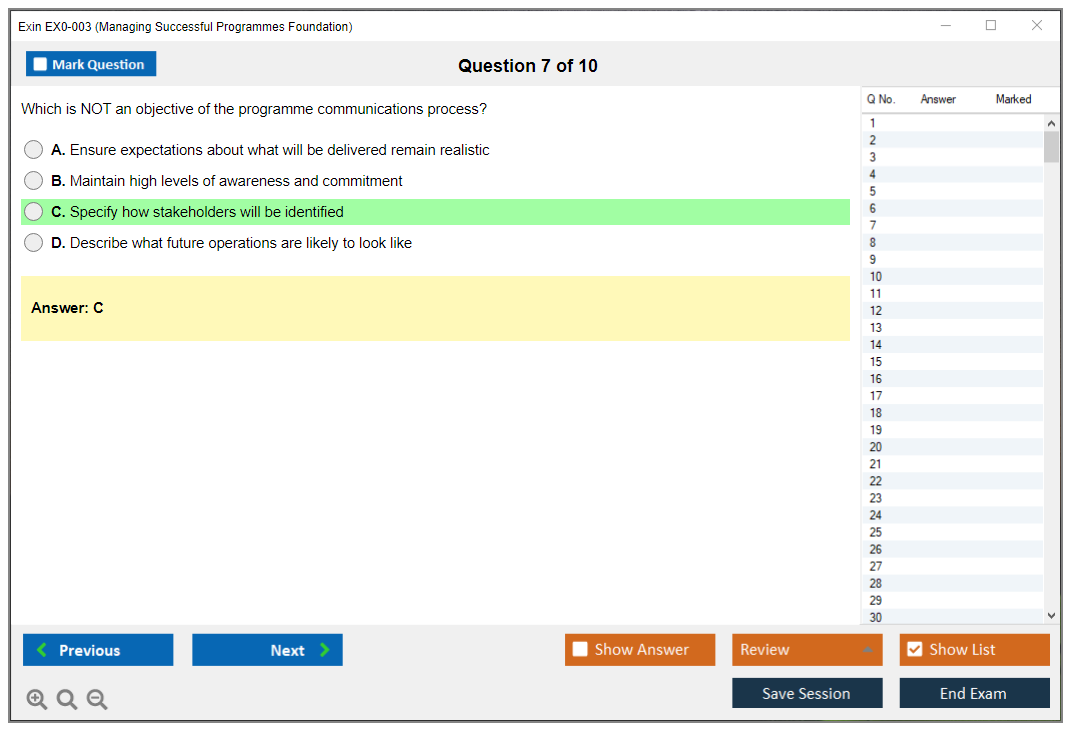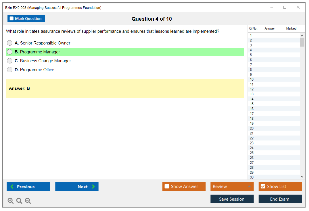 The Exin EX0-003 (Managing Successful Programmes Foundation) Exam is designed to assess a candidate's knowledge and understanding of the Managing Successful Programmes (MSP) framework, which is used for managing complex programs and delivering organizational change.
