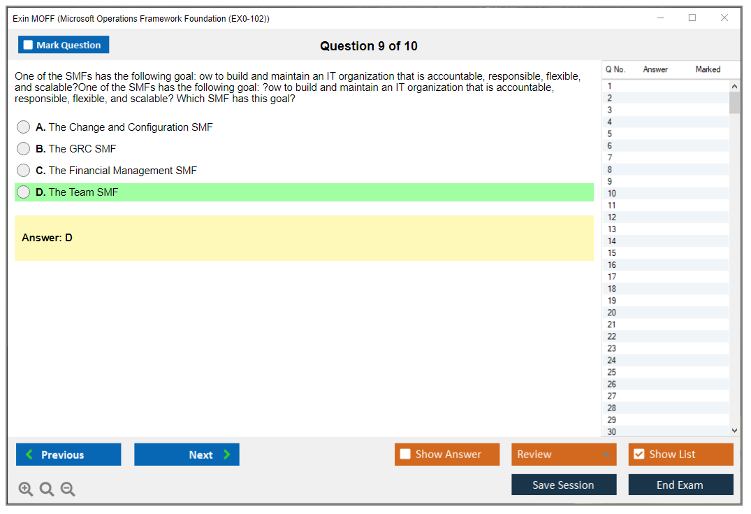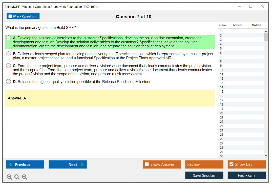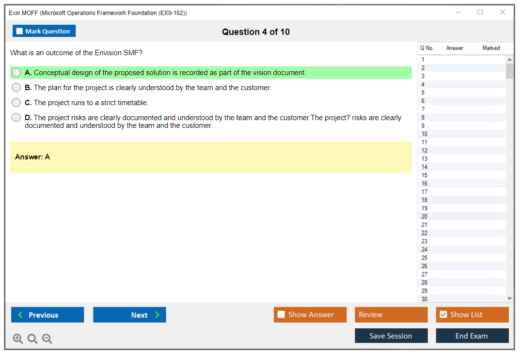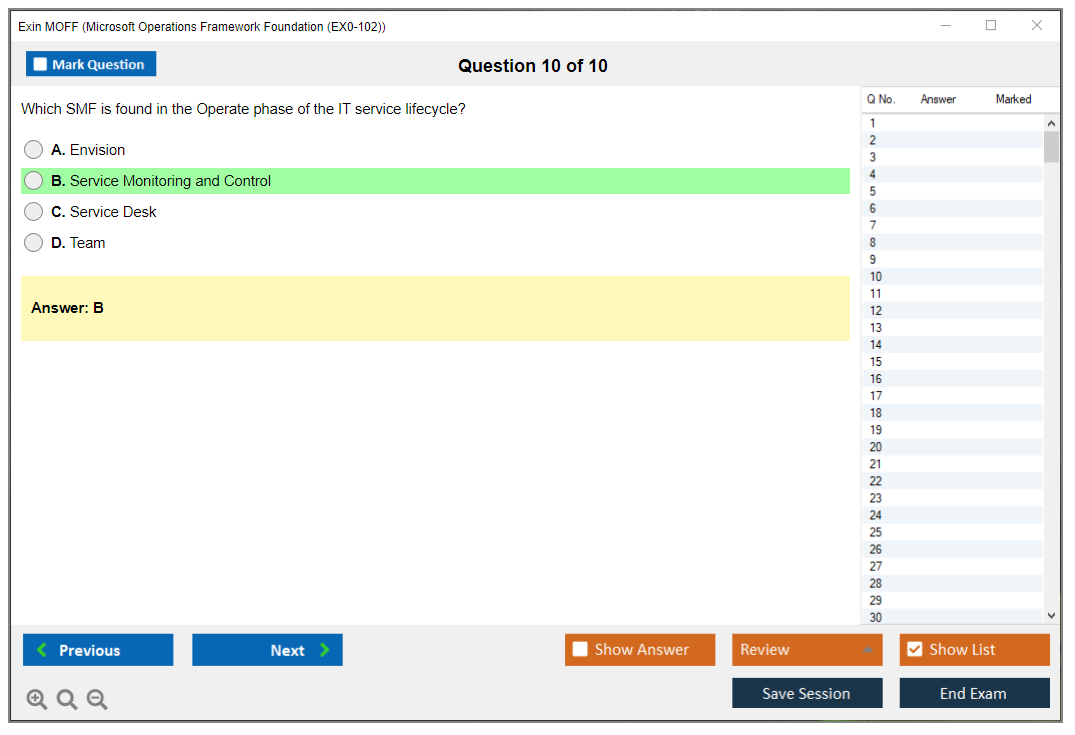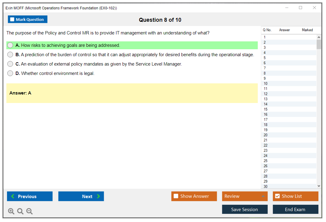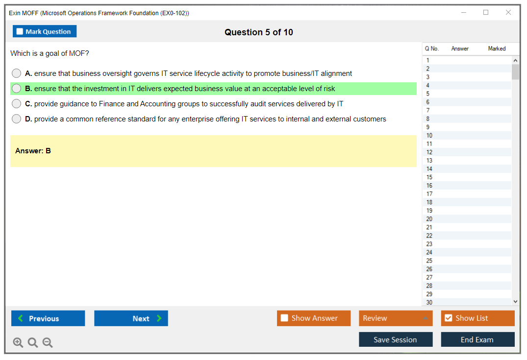 The Exin MOFF (Microsoft Operations Framework Foundation, EX0-102) exam is designed to validate an individual's understanding of the essential concepts of the Microsoft Operations Framework (MOF), which provides guidelines for IT service management.