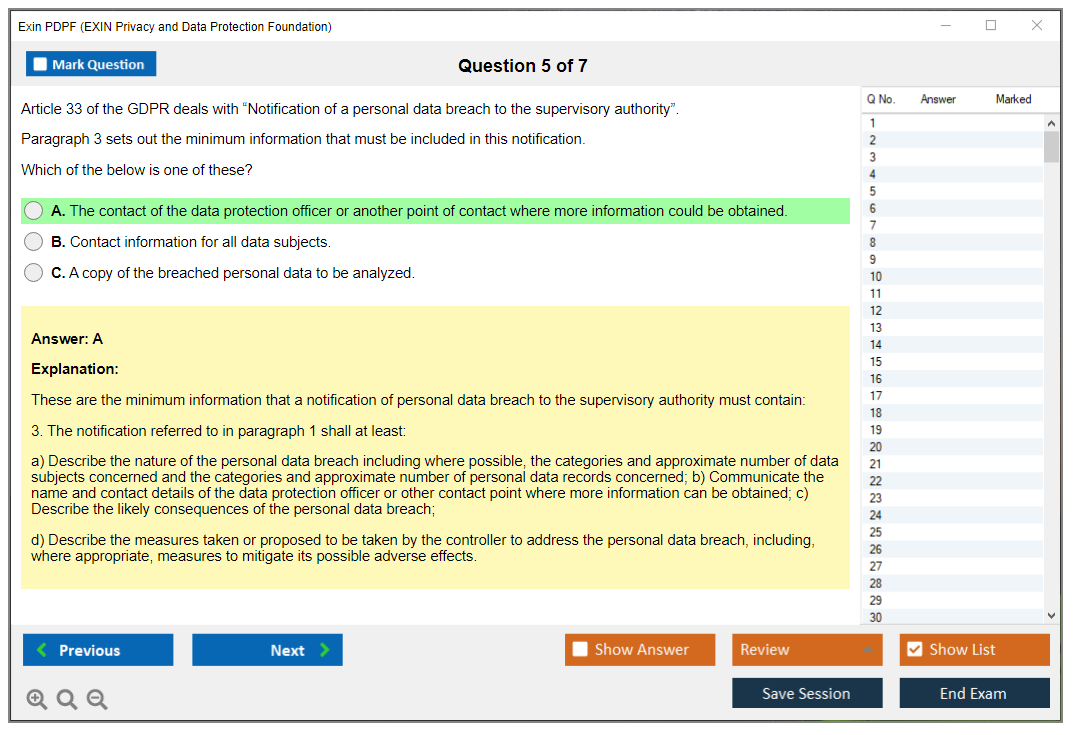 The EXIN Privacy and Data Protection Foundation (PDPF) exam is designed to evaluate a candidate's understanding of the fundamental principles of data protection and privacy. It covers essential topics such as the General Data Protection Regulation (GDPR), data protection roles, and responsibilities, and the basics of data security.