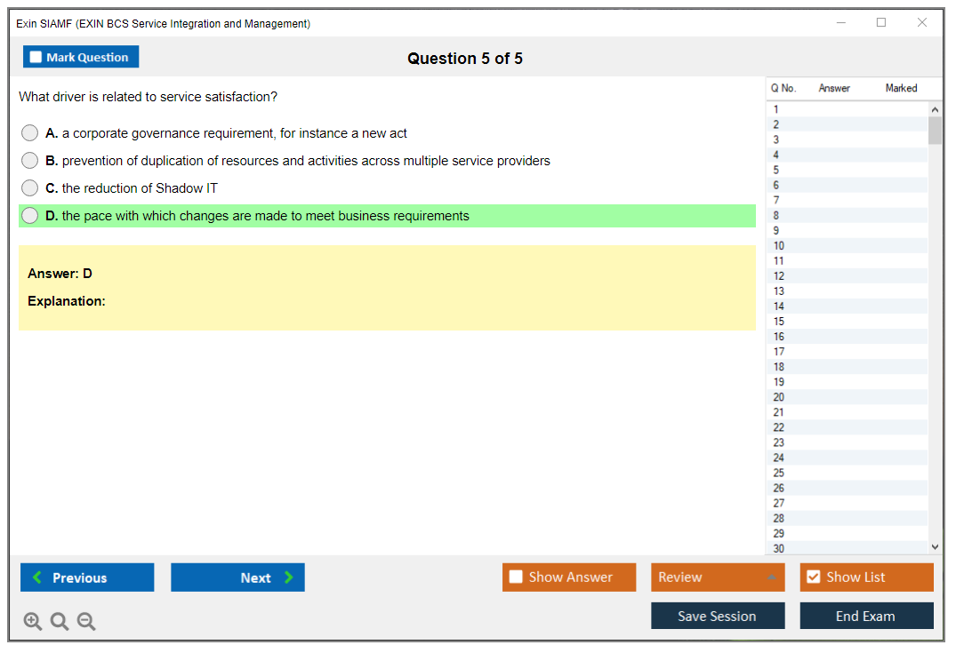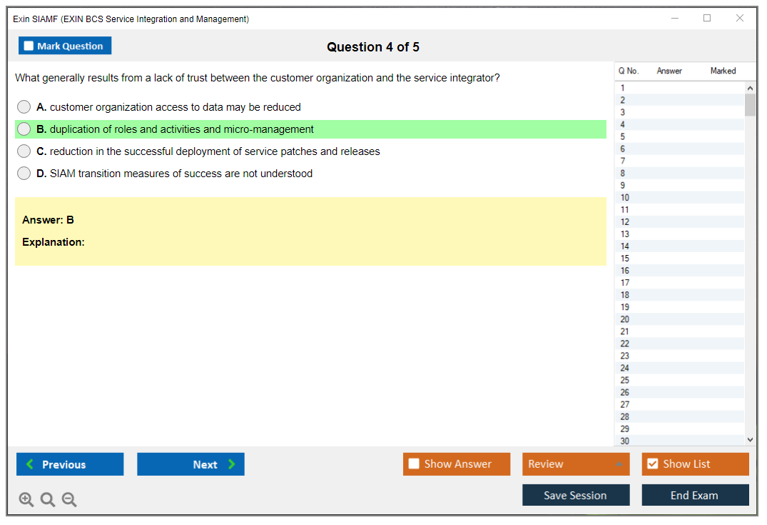 The EXIN BCS Service Integration and Management Foundation (SIAMF) exam is designed to test the candidate's knowledge of the fundamental principles of Service Integration and Management (SIAM). This certification is aimed at professionals who are involved in the management and integration of multiple service providers.