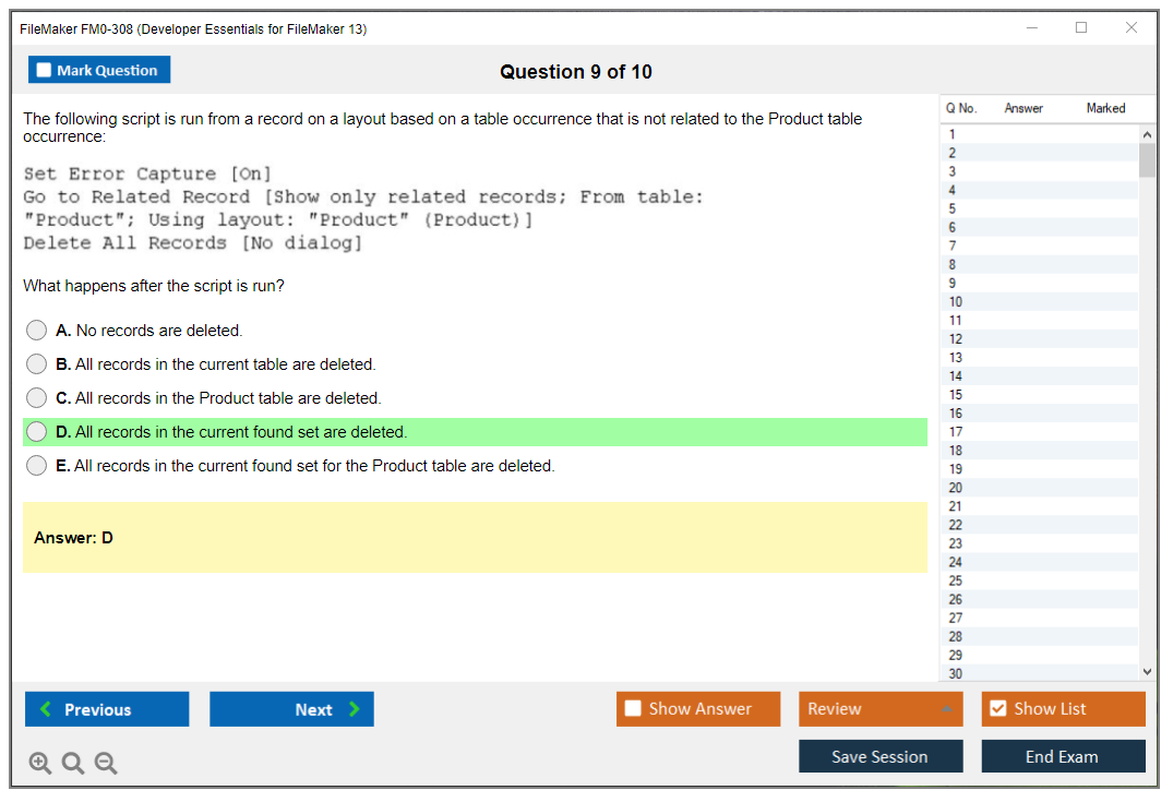 The question format of the FileMaker FM0-308 Exam includes multiple-choice questions, drag-and-drop, and scenario-based questions.