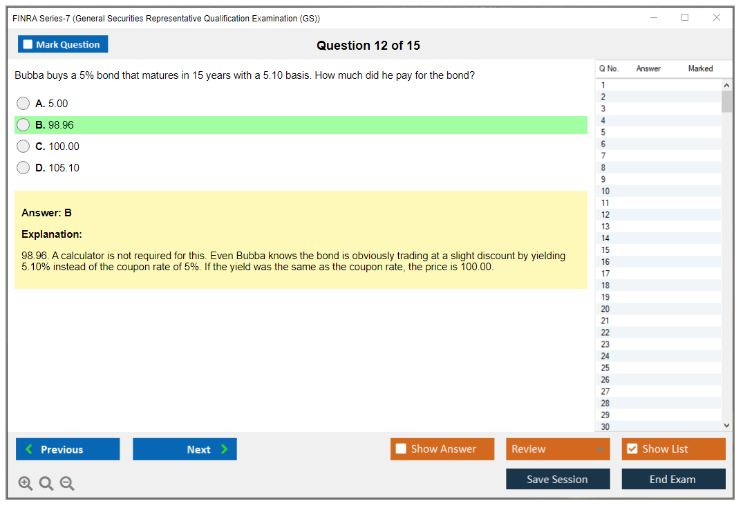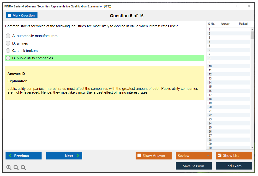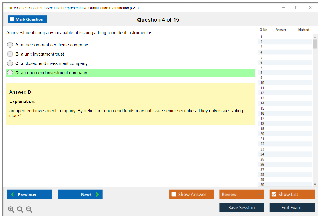 The question format of the FINRA Series-7 Exam is multiple-choice.