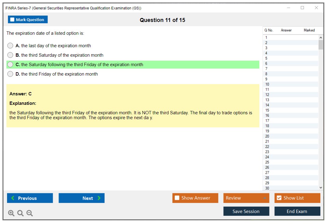 The FINRA Series-7 (General Securities Representative Qualification Examination (GS)) is a comprehensive exam administered by the Financial Industry Regulatory Authority (FINRA) that assesses the competency of an entry-level registered representative to perform their job as a general securities representative.