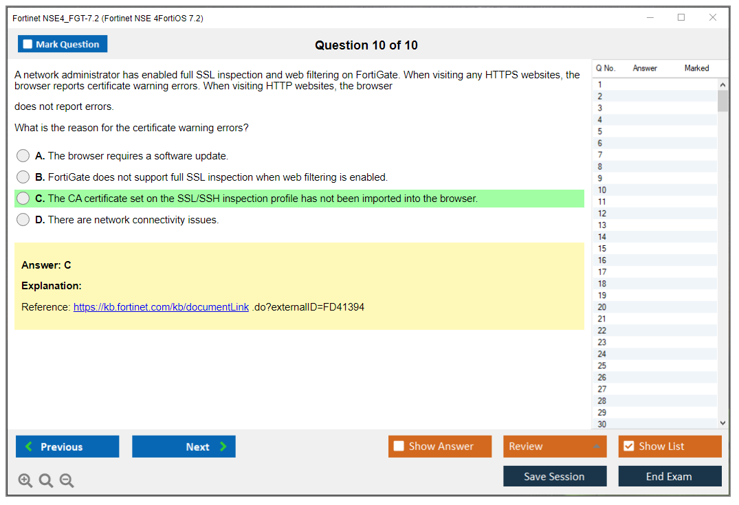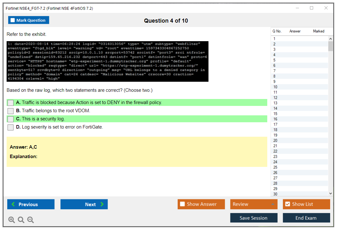 The Fortinet NSE4_FGT-7.2 (Fortinet NSE 4 - FortiOS 7.2) exam is designed to validate the knowledge and skills necessary to configure, install, and manage the day-to-day configuration, monitoring, and operation of a FortiGate device to support corporate network security policies.