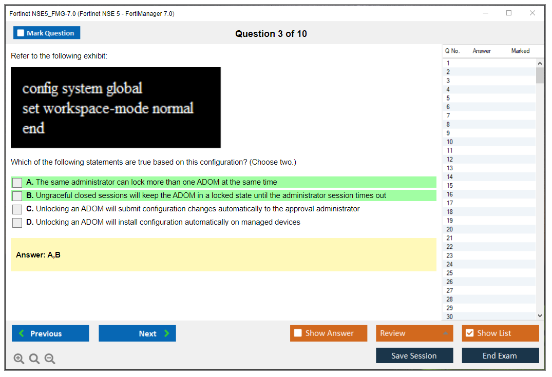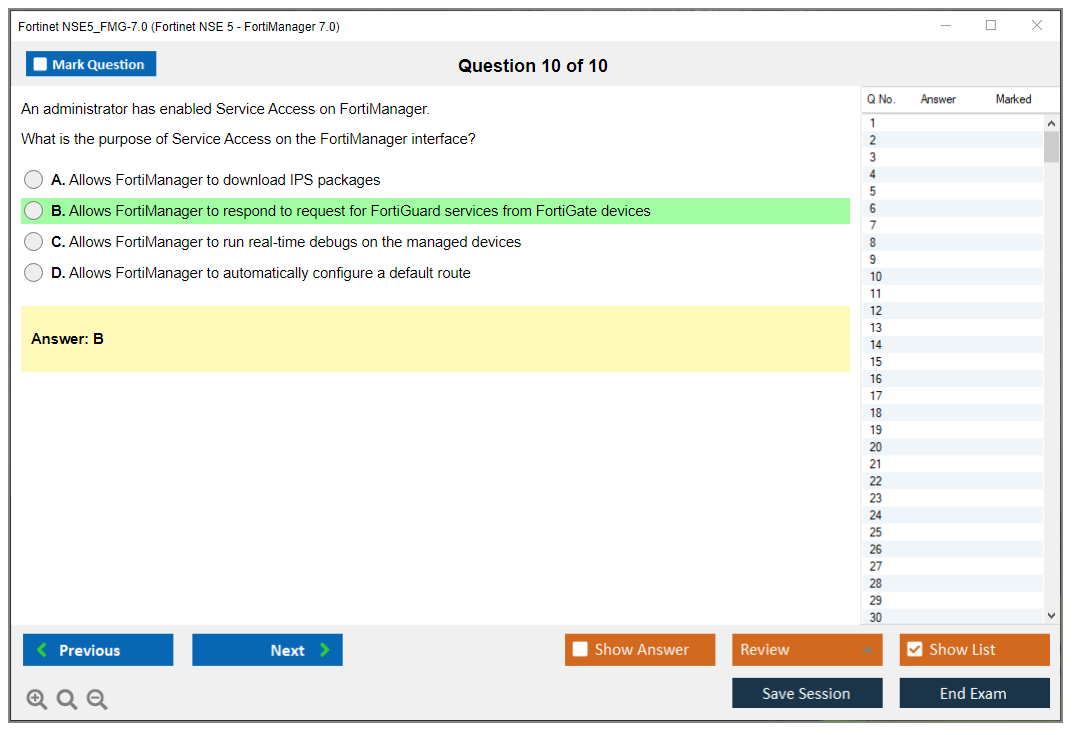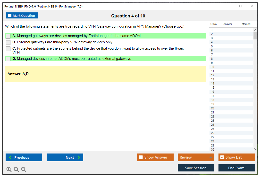 The Fortinet NSE5_FMG-7.0 (Fortinet NSE 5 - FortiManager 7.0) exam is designed to test the knowledge and skills required to configure, manage, and troubleshoot FortiManager solutions.