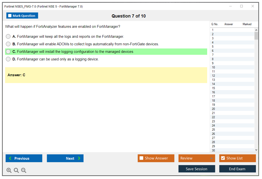The Fortinet NSE5_FMG-7.0 exam is part of the Fortinet Network Security Expert (NSE) program, which helps professionals validate their expertise with Fortinet's security products and solutions.