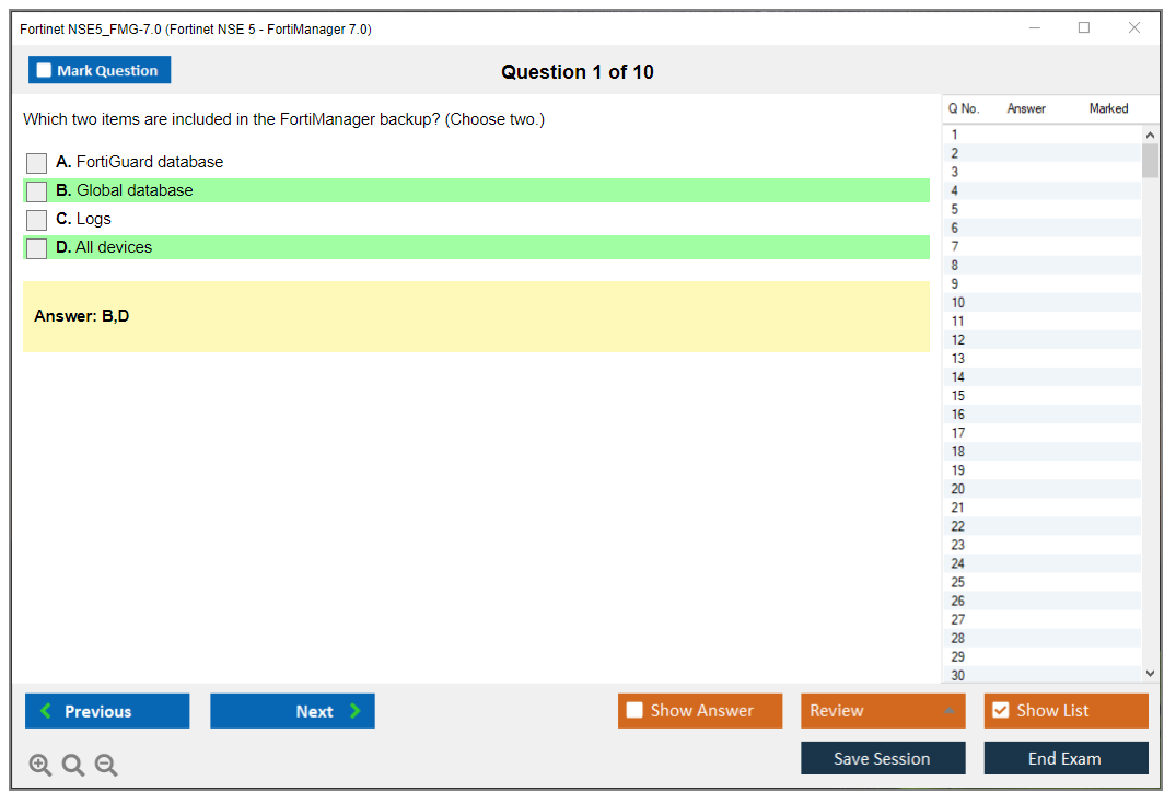 Note: Fortinet NSE5_FMG-7.0 (Fortinet NSE 5 - FortiManager 7.0) will not receive any new updates.