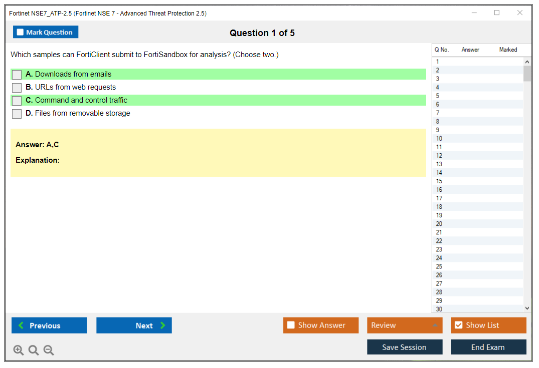 What are the Sample Questions of Fortinet NSE7_ATP-2.5 Exam?