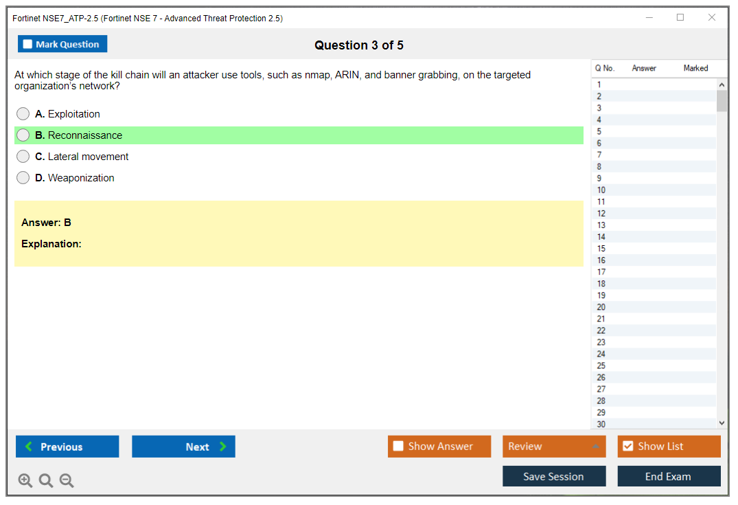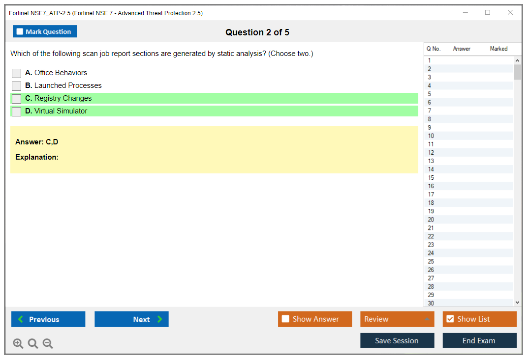 The Fortinet NSE7_ATP-2.5 exam is part of the Fortinet Network Security Expert (NSE) certification program, which includes multiple levels of certification from NSE 1 to NSE 8.