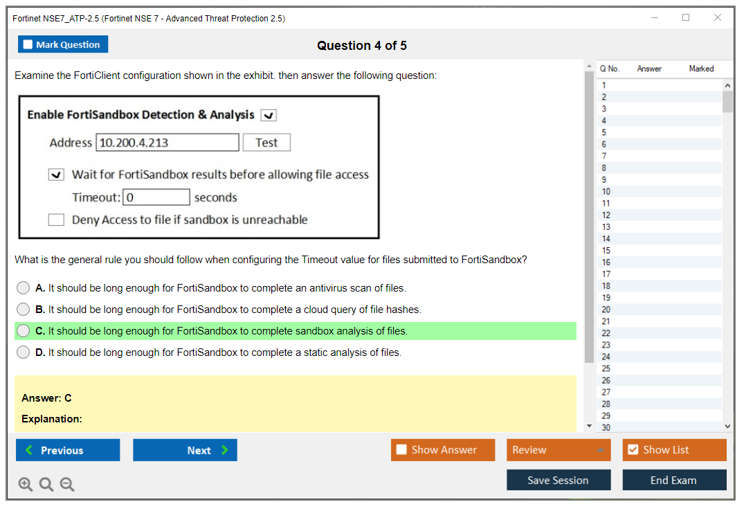 The Fortinet NSE7_ATP-2.5 (Fortinet NSE 7 - Advanced Threat Protection 2.5) exam is designed to test advanced knowledge and skills in deploying, managing, and troubleshooting Fortinet's Advanced Threat Protection (ATP) solutions.