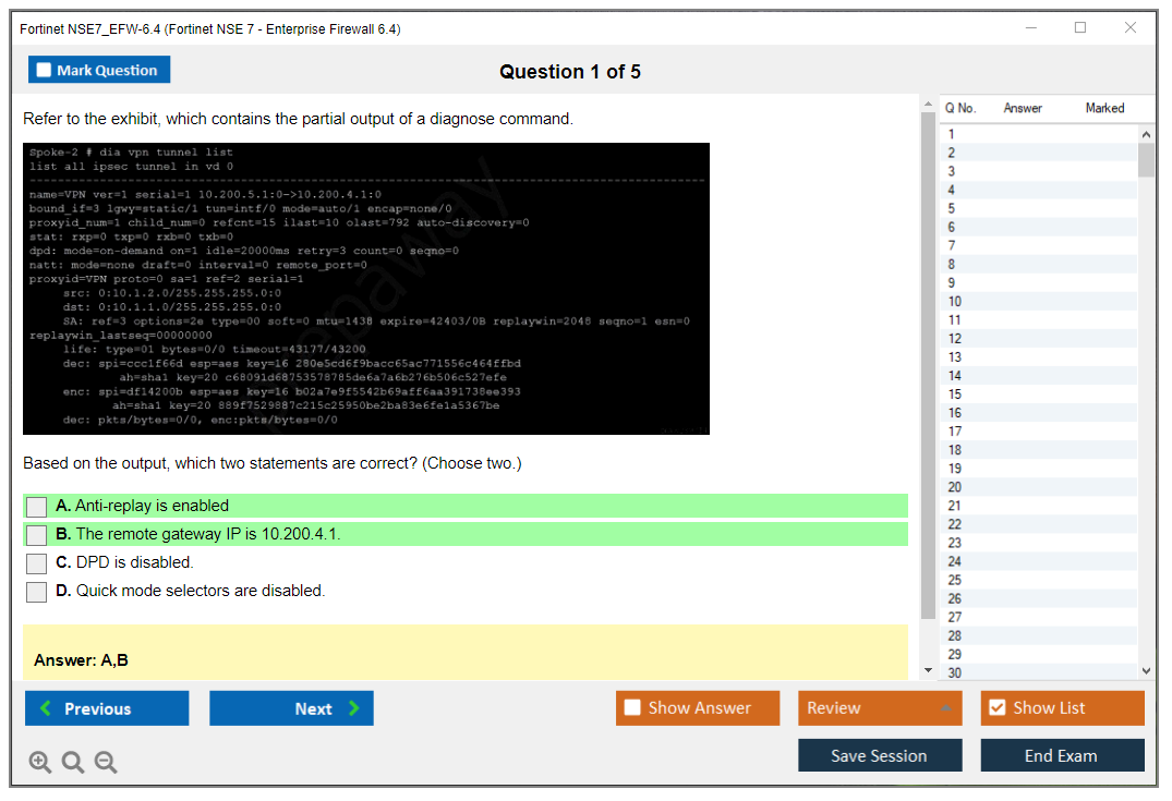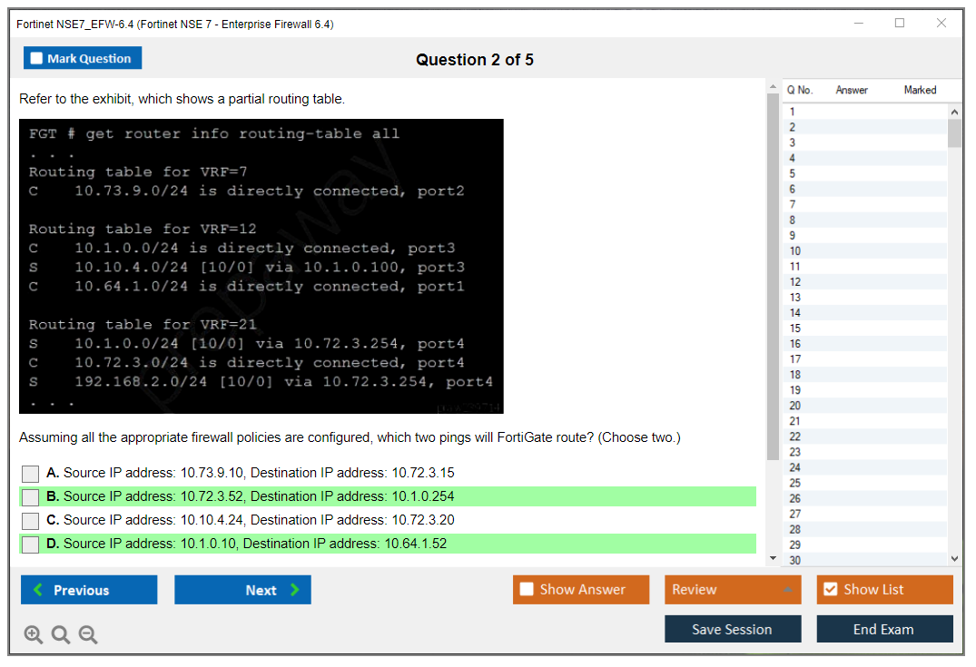 What are the Sample Questions of Fortinet NSE7_EFW-6.4 Exam?