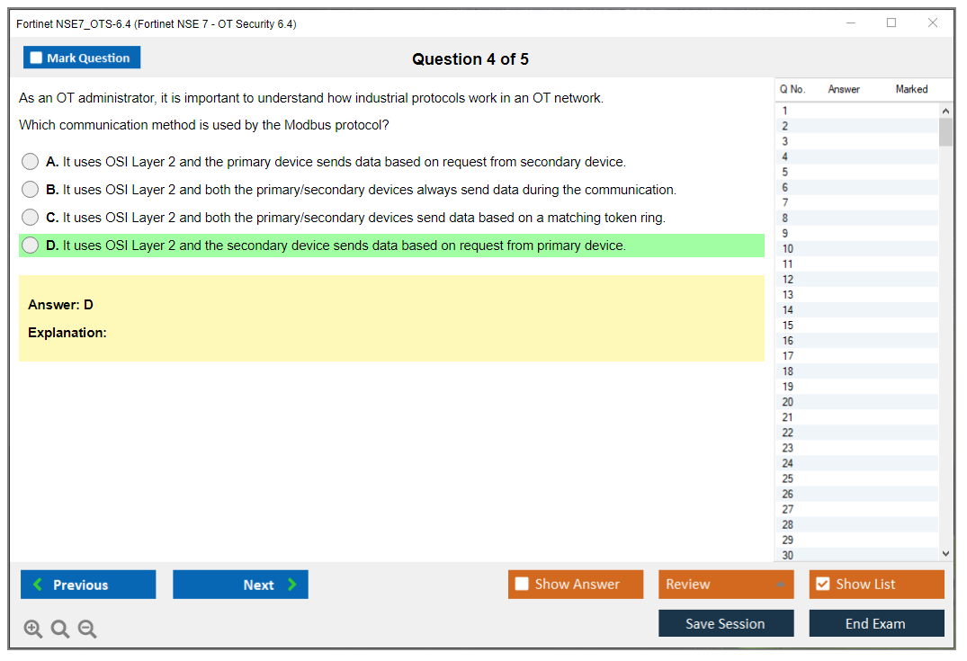 Note: Fortinet NSE7_OTS-6.4 (Fortinet NSE 7 - OT Security 6.4) will not receive any new updates.