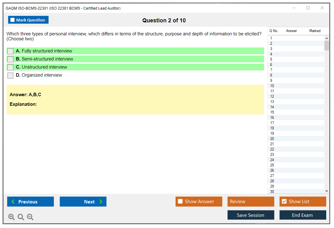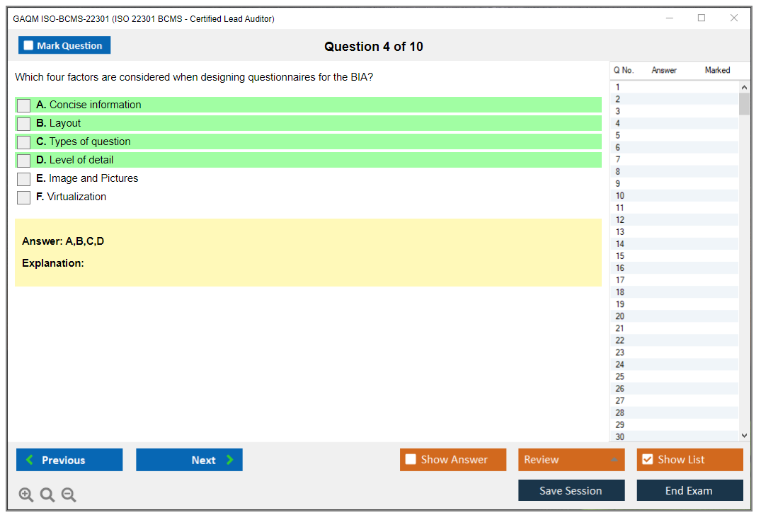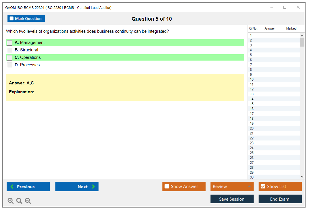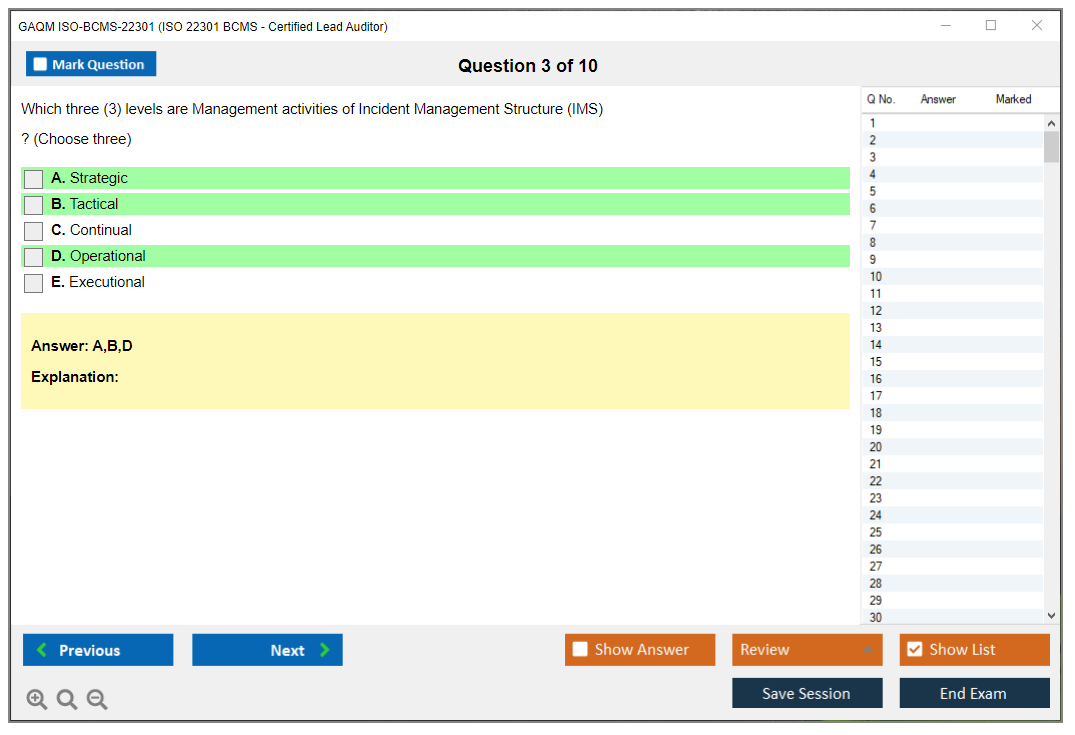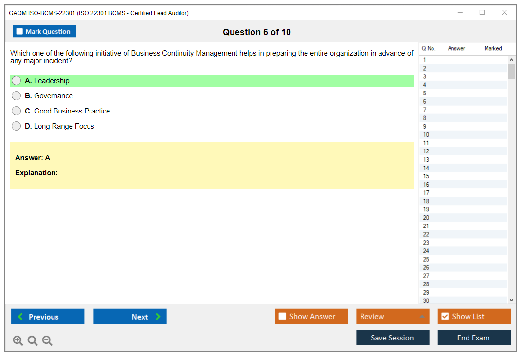 The GAQM ISO-BCMS-22301 (ISO 22301 BCMS - Certified Lead Auditor) Exam is designed to assess the knowledge and skills of individuals in auditing a Business Continuity Management System (BCMS) as per the ISO 22301 standard. It validates the candidate's ability to apply the principles, procedures, and techniques of auditing and to manage an audit program.